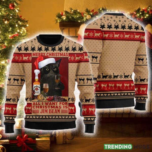 Featuring a playful black cat enjoying a refreshing sip of Jim Beam, this sweater combines humor and style effortlessly. The intricate details of the design, from the cat’s mischievous expression to the carefully crafted bottle and glass, make it a true conversation starter at any holiday gathering.