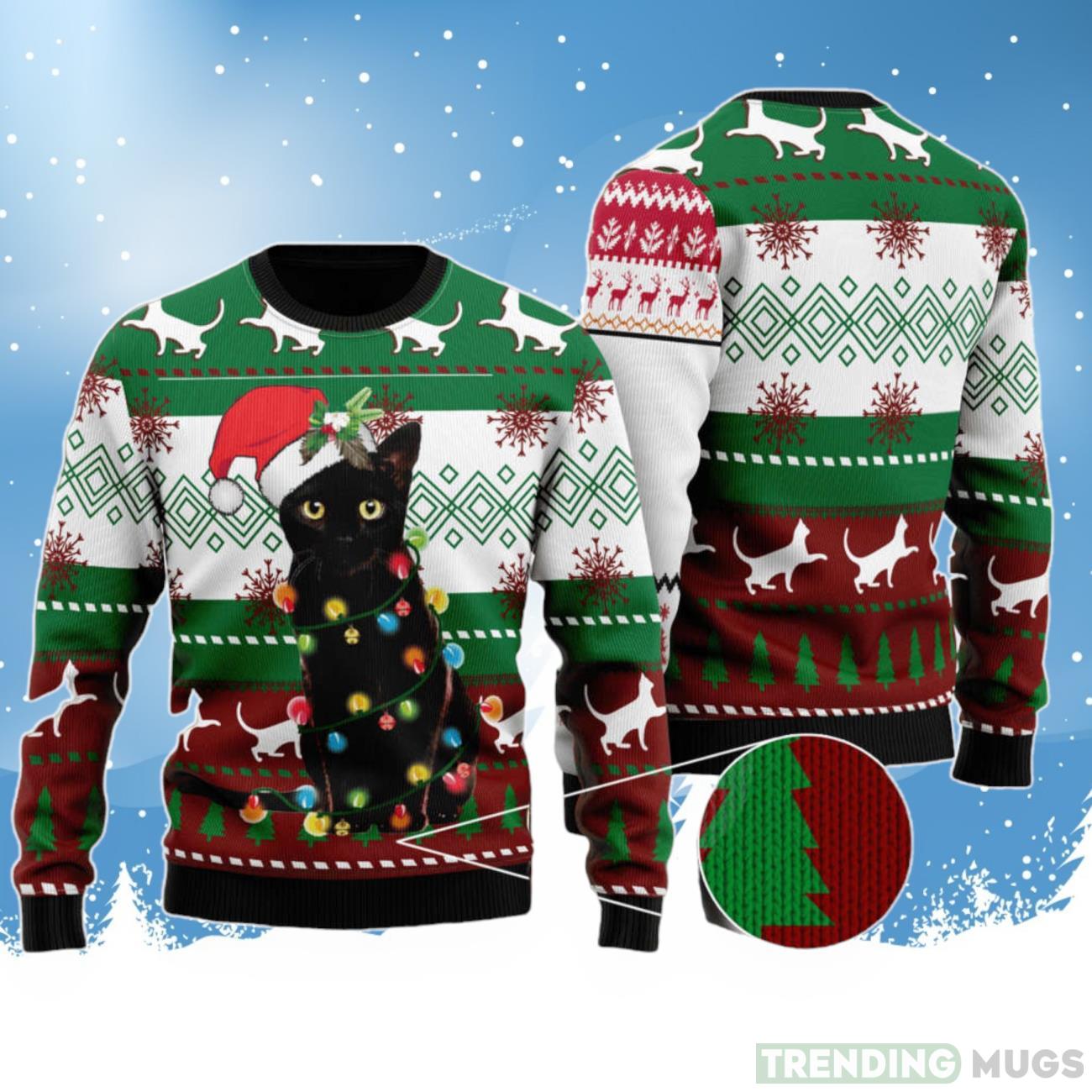 The intricate details of the black cat and vibrant Christmas lights create a captivating design that is sure to turn heads at any holiday gathering. Made from high-quality materials, this sweater is not only a fashion statement but also a durable companion for many Christmases to come.