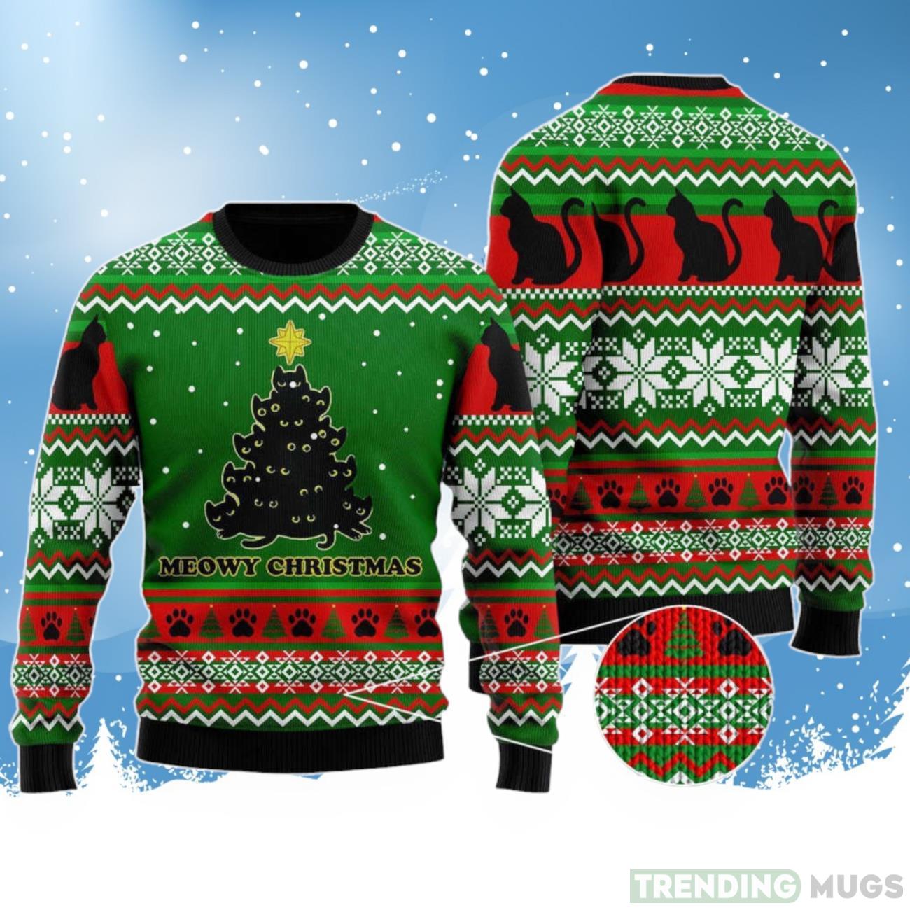 Black Cat Meowy Christmas Tree Ugly Christmas Sweater 2023 Informations: