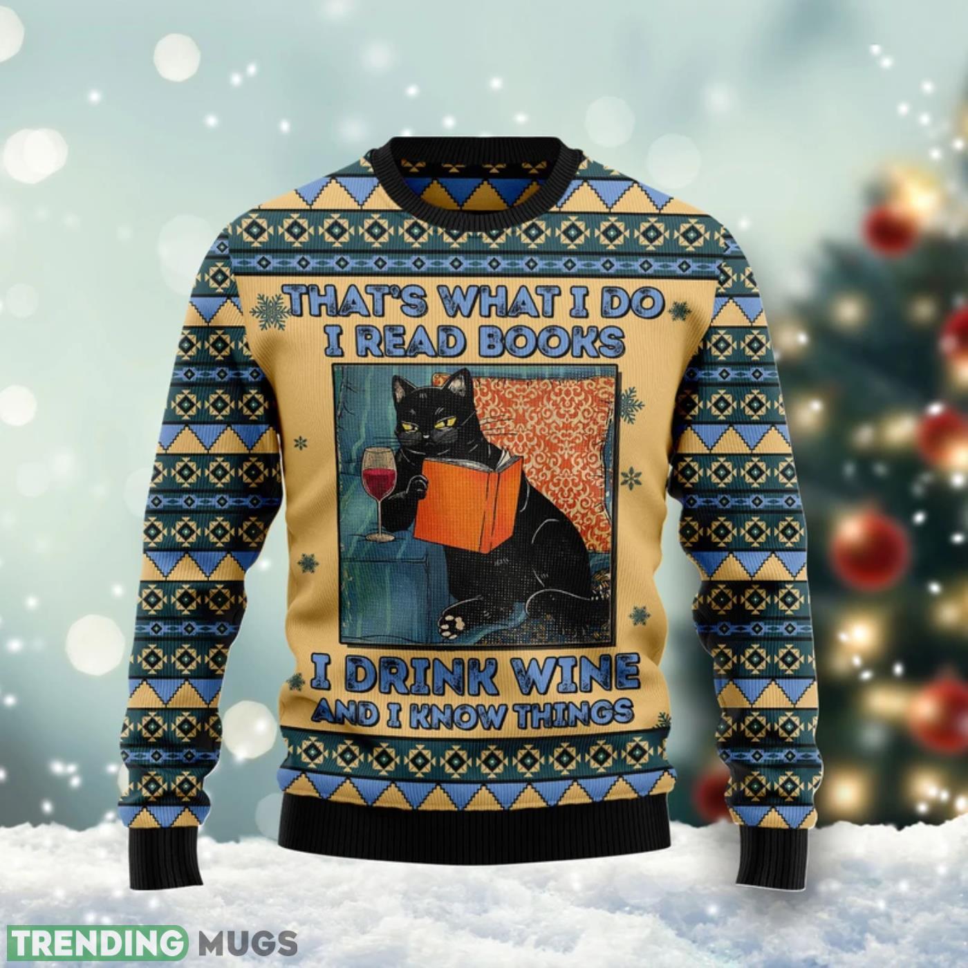 Black Cat Read Books Drink Wine Know Things Ugly Christmas Sweater Cute Christmas Gift For Men And Women Informations: