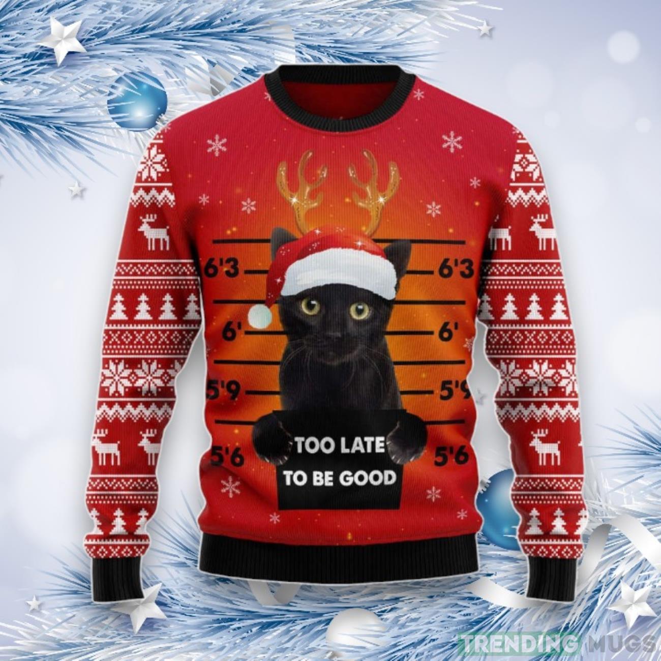 Black Cat Too Late To Be Good Ugly Christmas Sweater, Gift For Cat Lover Informations: