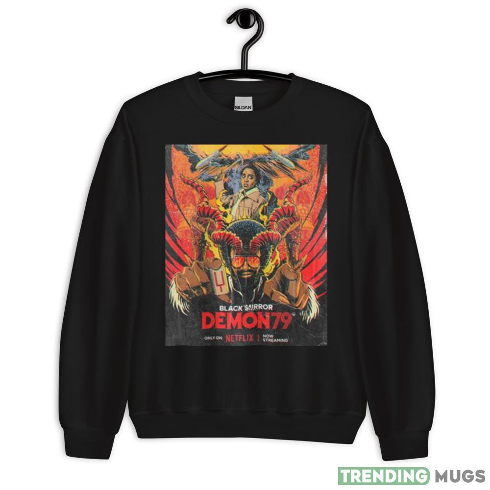 Get ready to express your love for the iconic Netflix movie, Black Mirror Demon 79, with this amazing fan gift T-shirt. Perfect for any fan of the show, this T-shirt is a must-have addition to your collection. The bold black color and striking graphic design of the demon on the front make it a truly eye-catching and unique piece of apparel. Made from high-quality materials, this T-shirt is comfortable to wear and durable enough to withstand frequent use. Show off your love for Black Mirror Demon 79 in style and order your fan gift T-shirt today.