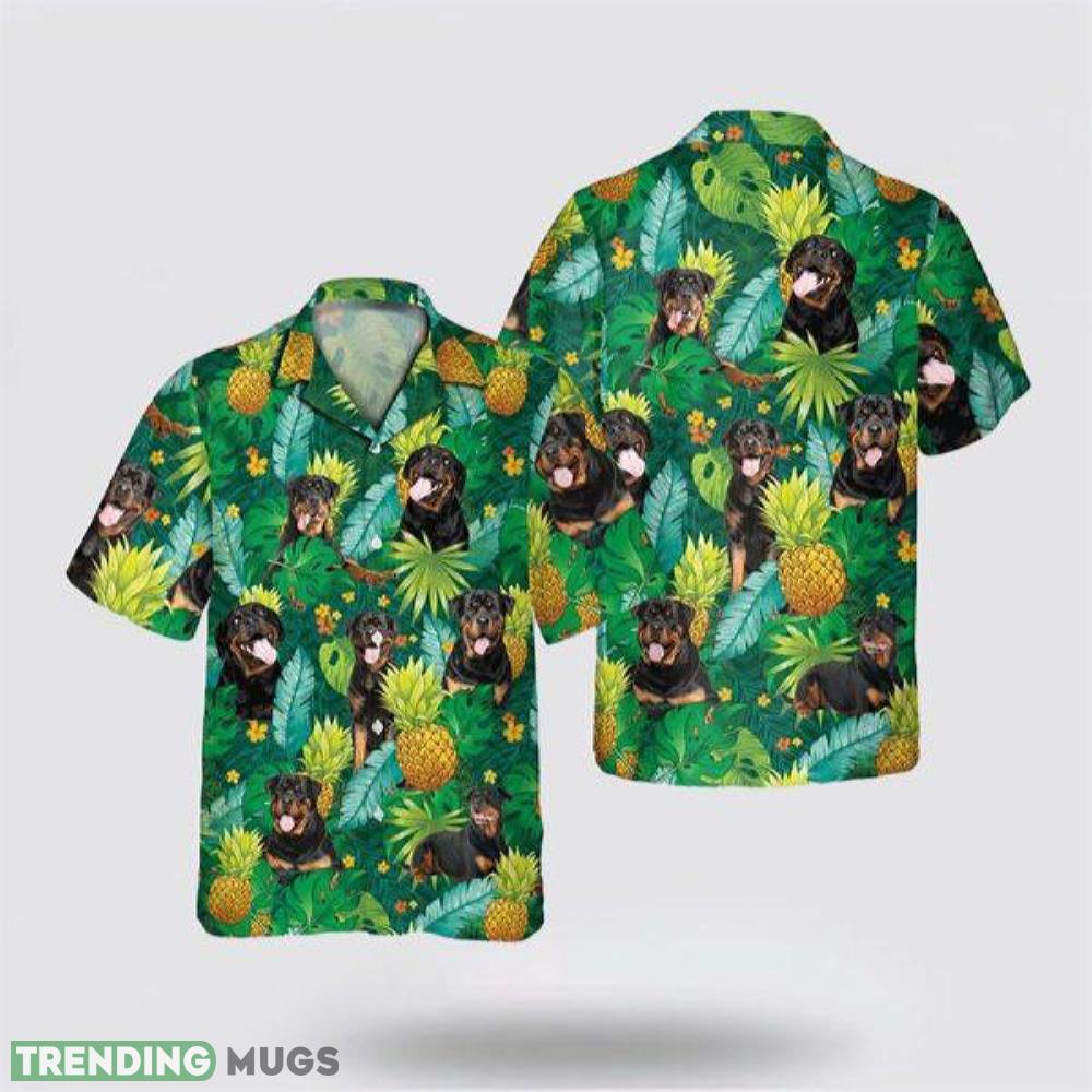 Black Rottweiler On Leaves Green Background Hawaiian Shirt Aloha Shirt For Men And Women – Black Rottweiler On Leaves Green Background Hawaiian Shirt Aloha Shirt For Men And Women_1