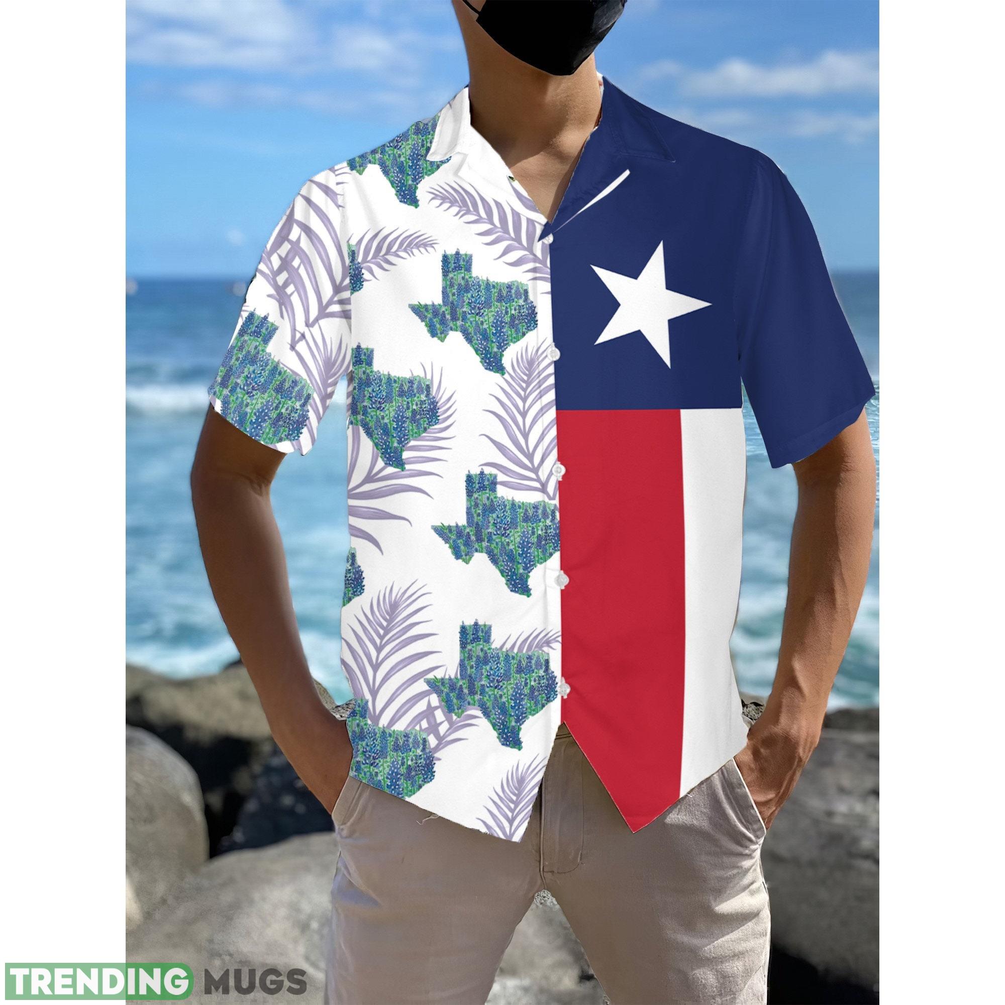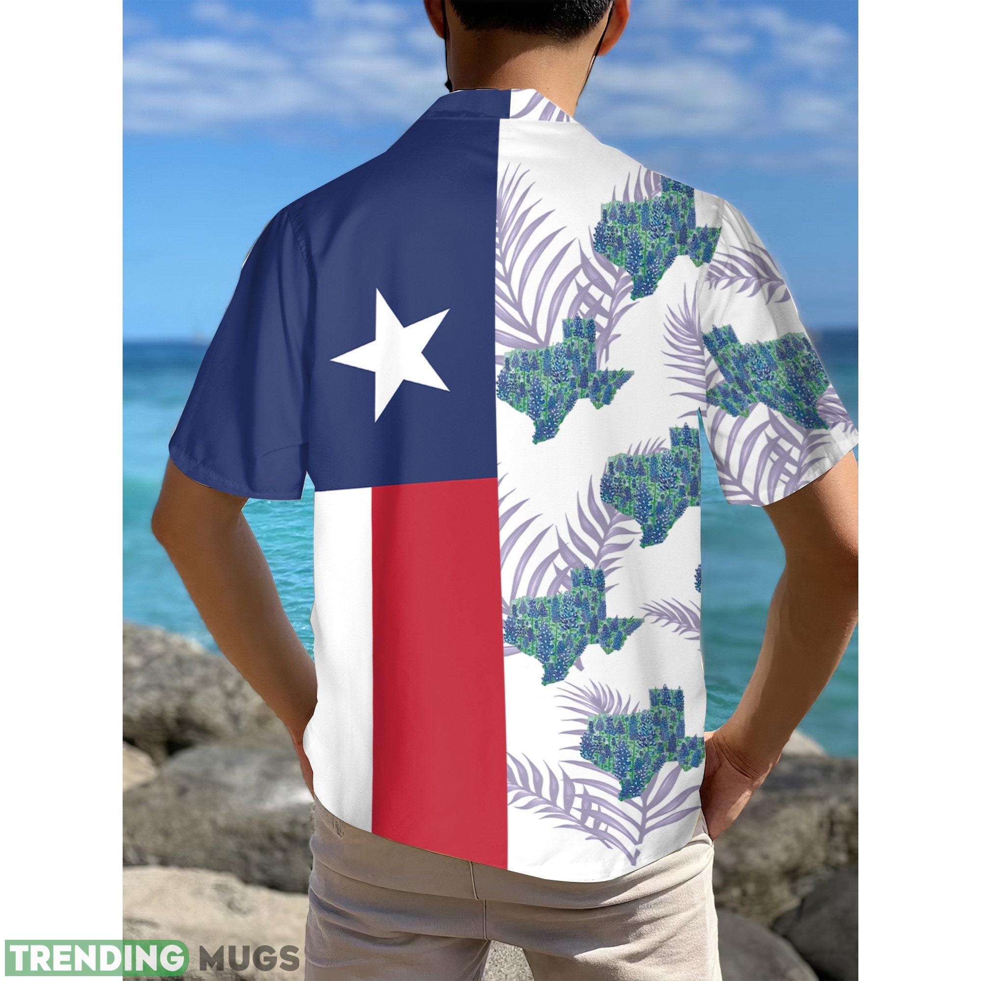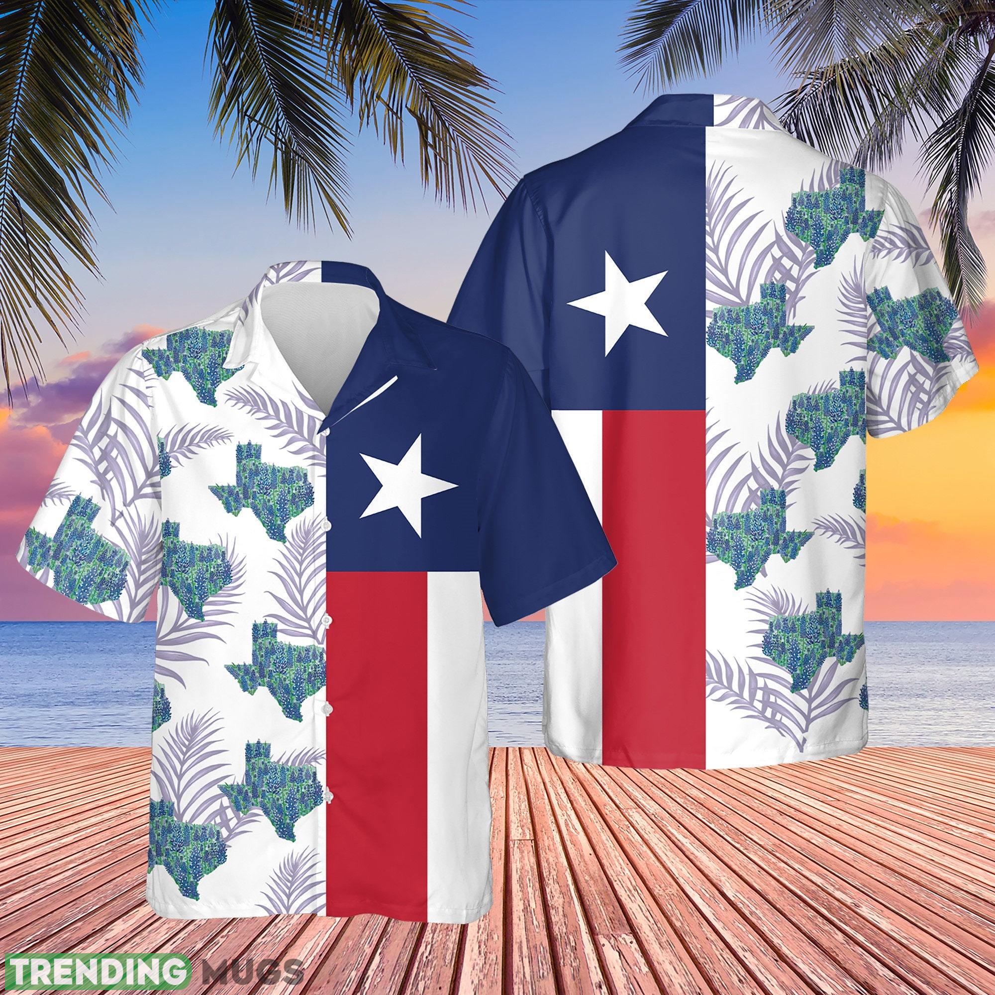 Blue Bluebonnet Texas Hawaiian Shirt Texas Hawaiian Shirt Floral Texas Flag Shirt Details: