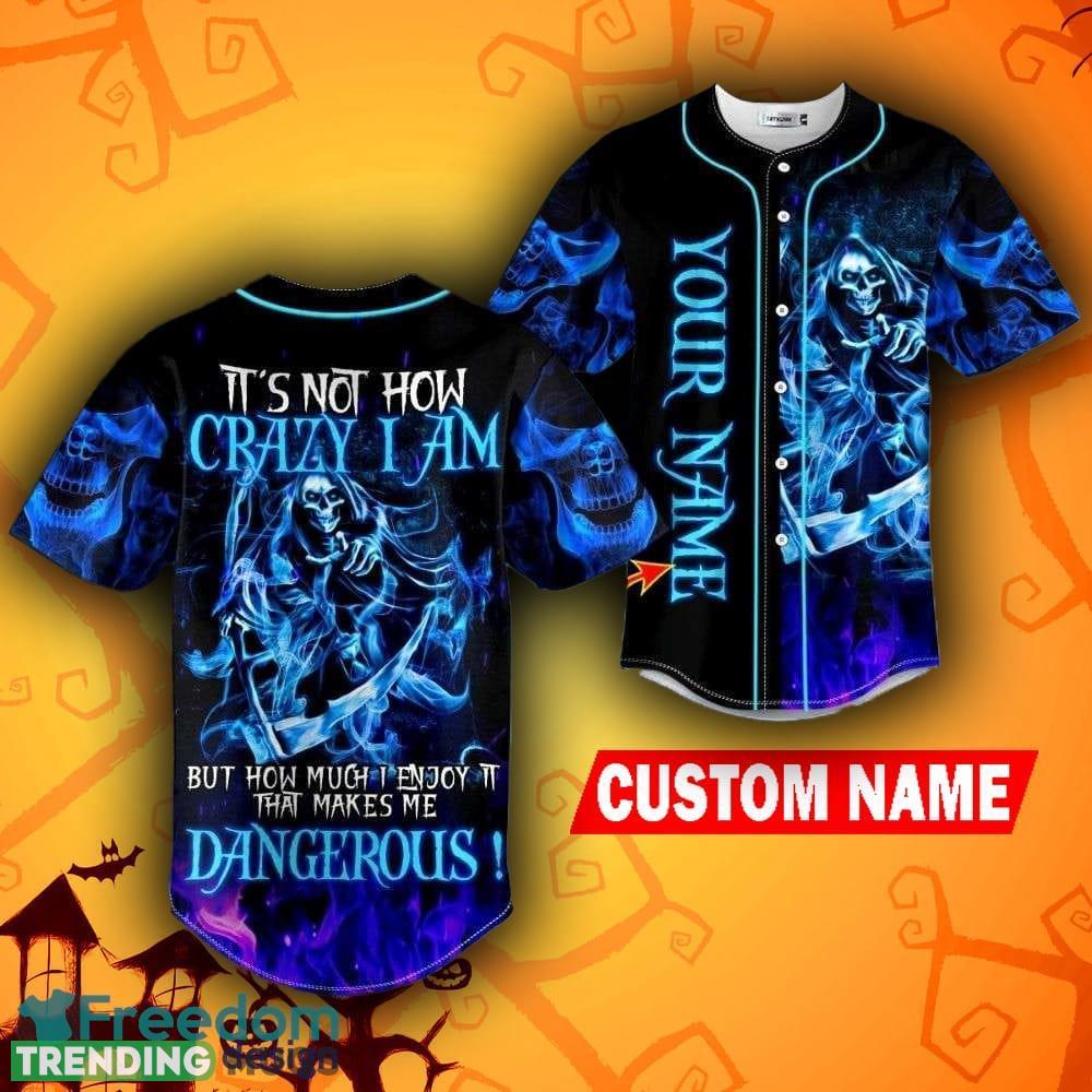 Blue Smoke Grim Reaper Halloween Skull Holiday Baseball Jersey Shirt Custom Name Information: