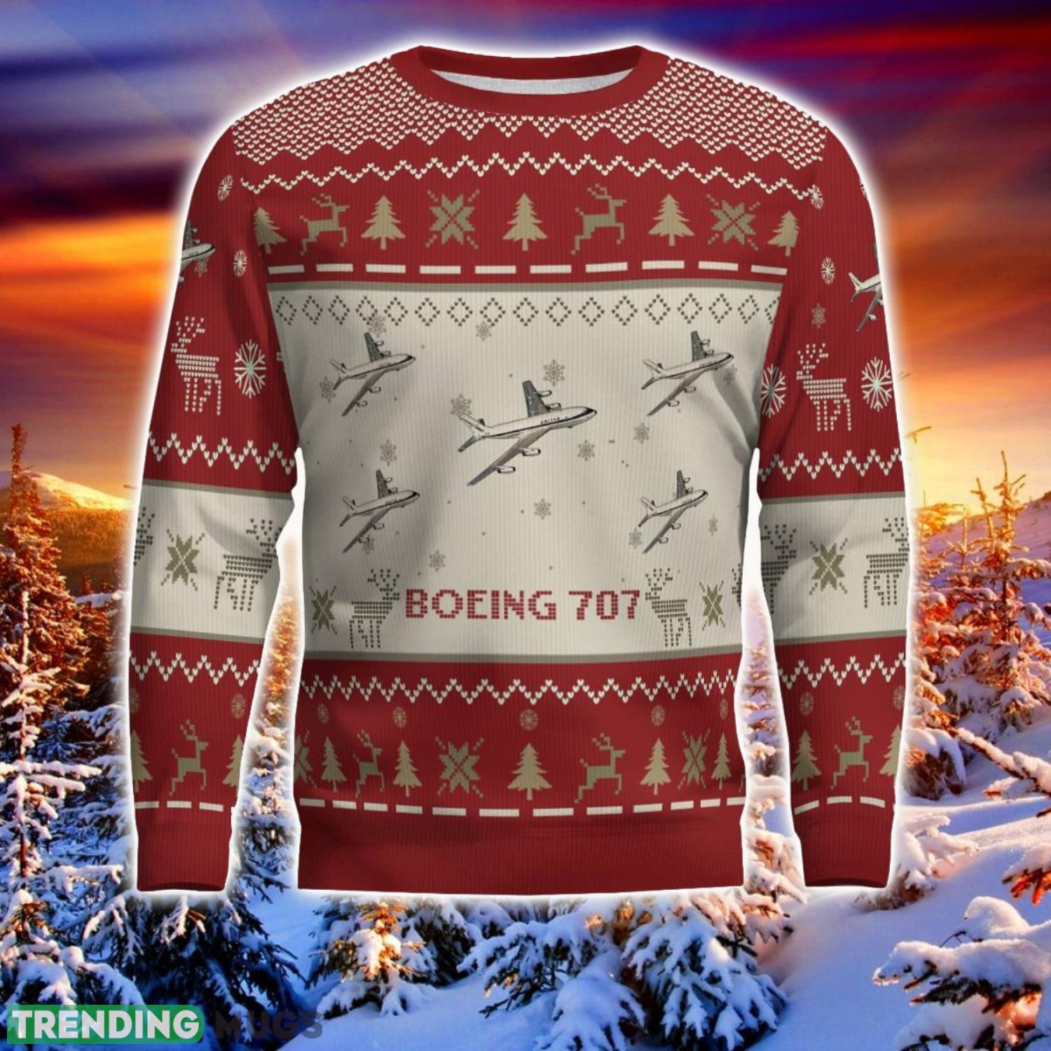 Boeing 707 Aircraft Red Ugly Chrisrmas Sweater Aircraft Lover Veteran 3D Sweater Winter Gift Product Photo 1