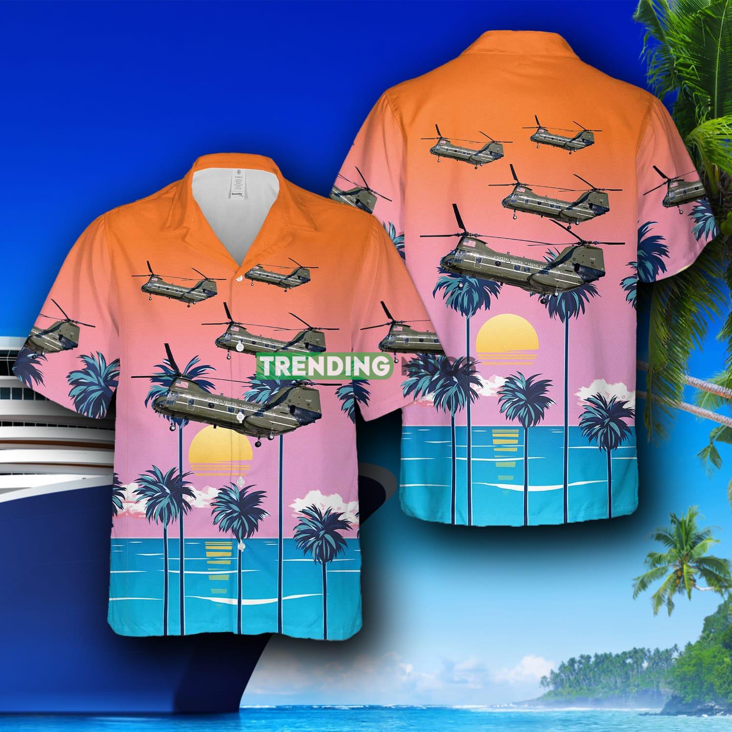 Boeing Vertol CH-46E Sea Knight BuNo 157683 Of HMX-1 The Nighthawks US Marine Corps Hawaiian Shirt Details: