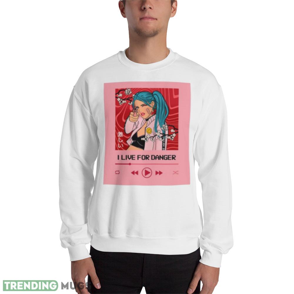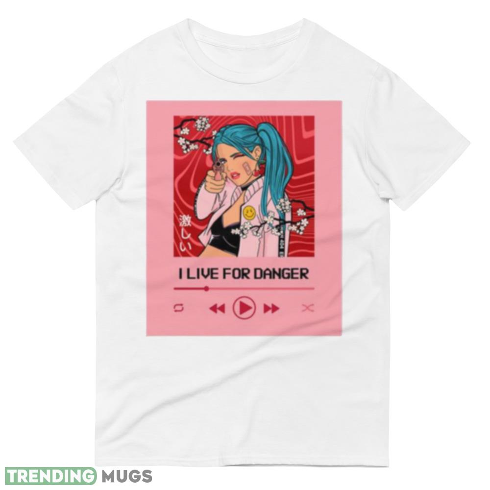 This shirt is made from the highest quality material, ensuring that you’re not only comfortable but also stylish. The design features Harley Quinn holding her signature mallet, with the words “Born For Danger” written in bold, eye-catching font. The vibrant colors of the design pop against the black background of the shirt, making it a statement piece that’s sure to turn heads.