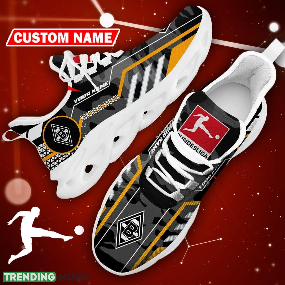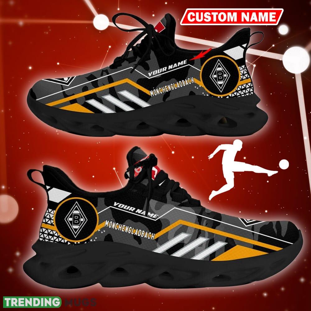 Borussia Monchengladbach Logo Sport Sneakers Camo Black Max Soul Shoes Custom Name information: