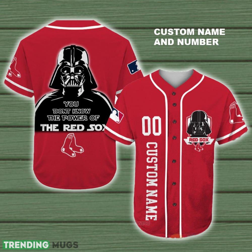 Show your support for the Boston Red Sox in style with this unique Darth Vader MLB Baseball Jersey Shirt. Customized with your choice of number and name, this shirt combines your love for baseball and Star Wars in one eye-catching design. Made with high-quality materials, this shirt is perfect for game day or everyday wear. Stand out from the crowd and let your fandom shine with this one-of-a-kind Boston Red Sox jersey shirt.