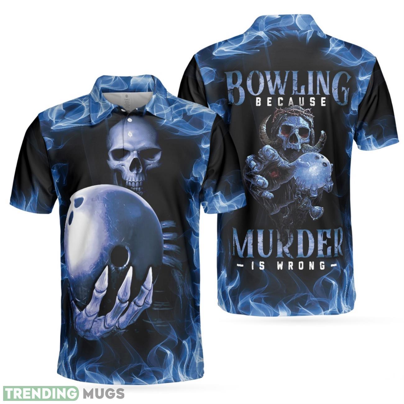 Bowling Murder Polo Shirt Blue Flame Pattern Bowling Polo Shirt Scary Skull Shirt Design For Halloween Information:
