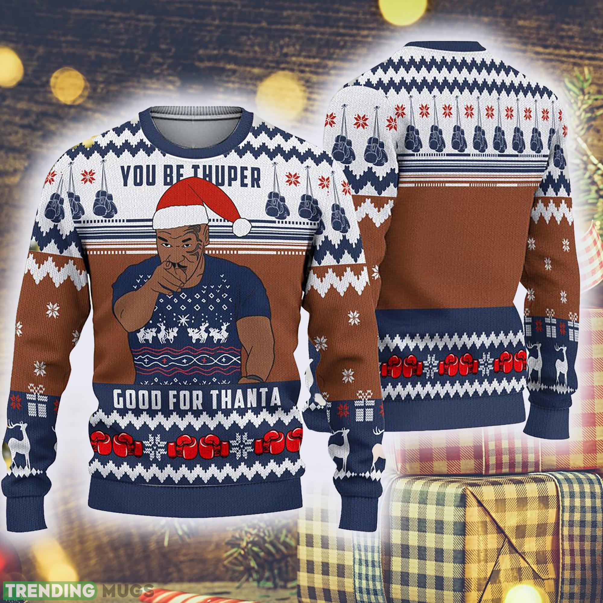 Featuring a jolly Santa Claus rocking a pair of boxing gloves, this sweater combines the joy of Christmas with the excitement of sports. The vibrant colors and intricate design make it a standout piece at any holiday gathering or ugly sweater party.