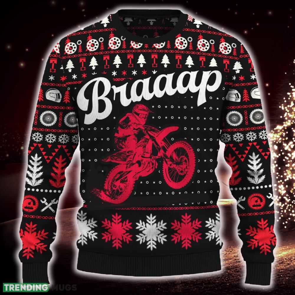 Featuring the iconic Braaap 250 SX-F design, this sweater is a must-have for all motocross enthusiasts. The vibrant colors and intricate detailing make it a standout piece that will surely turn heads at any holiday gathering. Whether you’re attending an ugly sweater party or simply want to spread some Christmas cheer, this sweater is guaranteed to make you the center of attention!