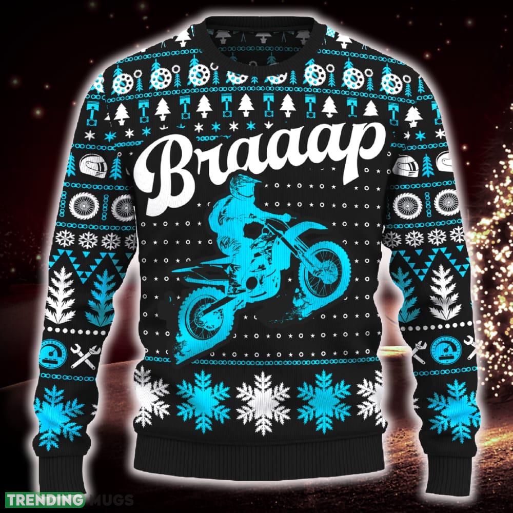 Get ready to rev up the holiday spirit with our Braaap CRF250R For Fans Ugly Christmas Sweater! This festive masterpiece combines the thrill of motocross with the coziness of a classic ugly Christmas sweater. Perfect for both motocross enthusiasts and anyone looking to add a touch of excitement to their holiday wardrobe.