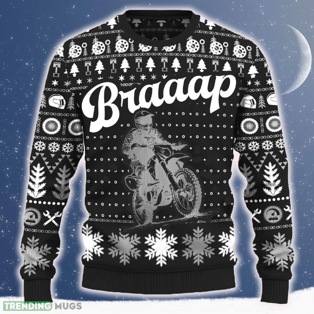 Get ready to rev up the holiday spirit with the Braaap Dual Sport Christmas Tree AOP Sweater! This special gift is a must-have for all motorcross enthusiasts, both men and women.