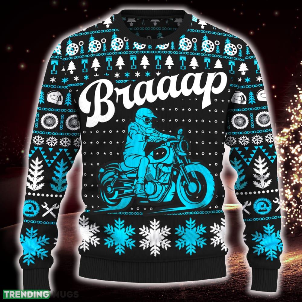 Braaap Freedom Cruiser Motorcross Snowflakes Knitted Christmas Sweater AOP Gift Holidays 3D Sweater