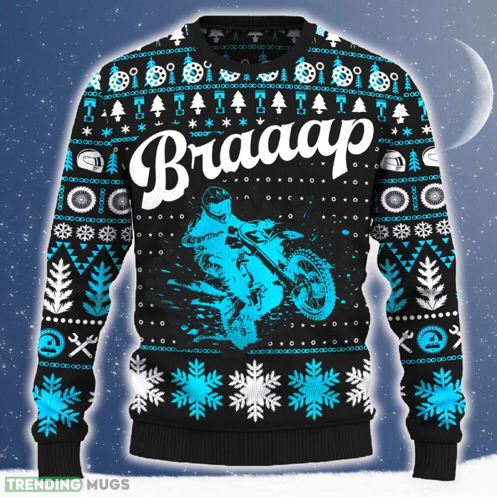 Get ready to rev up the holiday spirit with the Braaap KX450F Christmas Tree AOP Sweater Motorcross Special Gift! This incredible sweater is the perfect present for both men and women who love the thrill of motorcross.