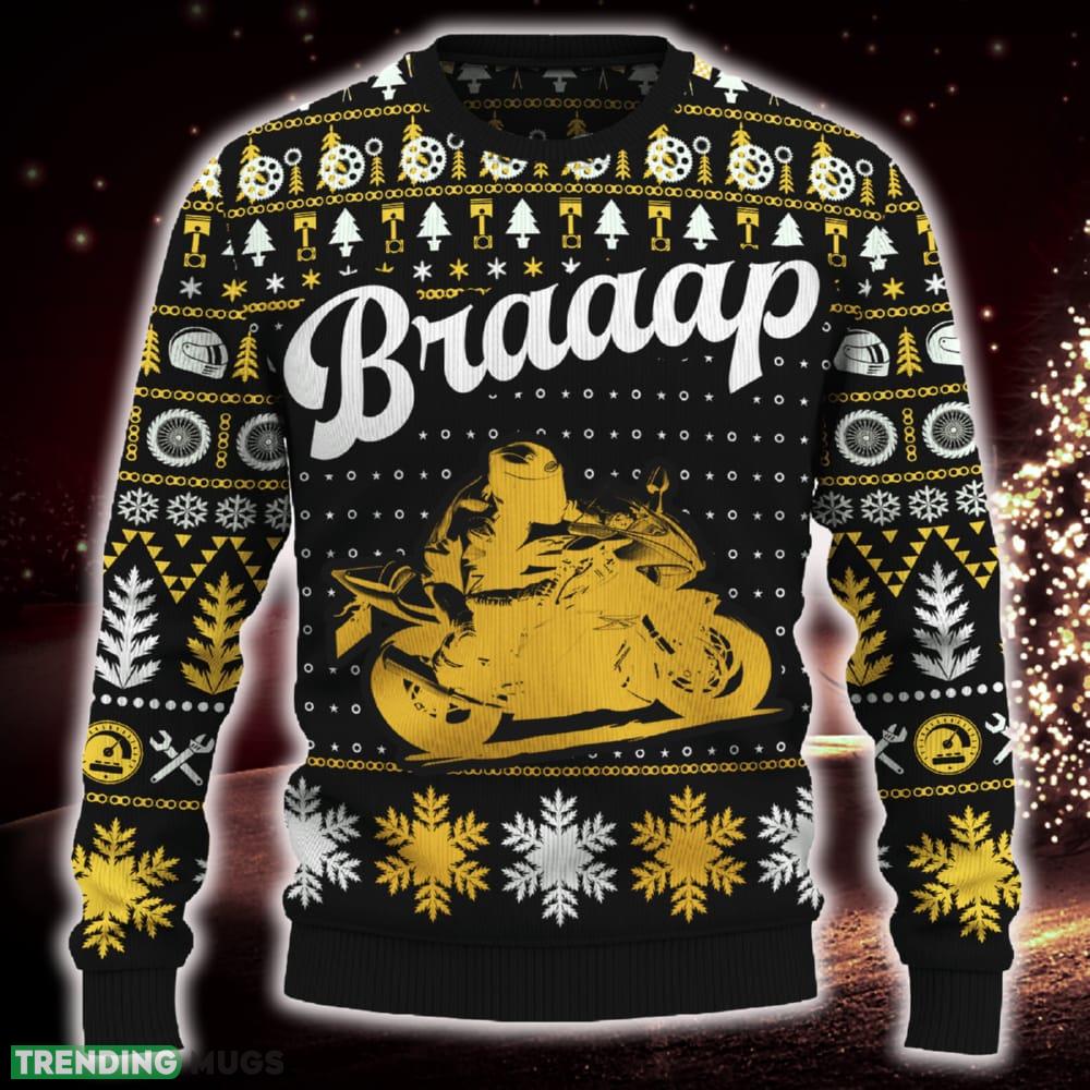 Crafted with utmost care, this sweater features the iconic Braaap Ninja ZX-6R motorcycle, adorned with festive decorations, on a cozy and comfortable fabric. The vibrant colors and intricate details make it a standout piece, sure to turn heads at any holiday gathering.