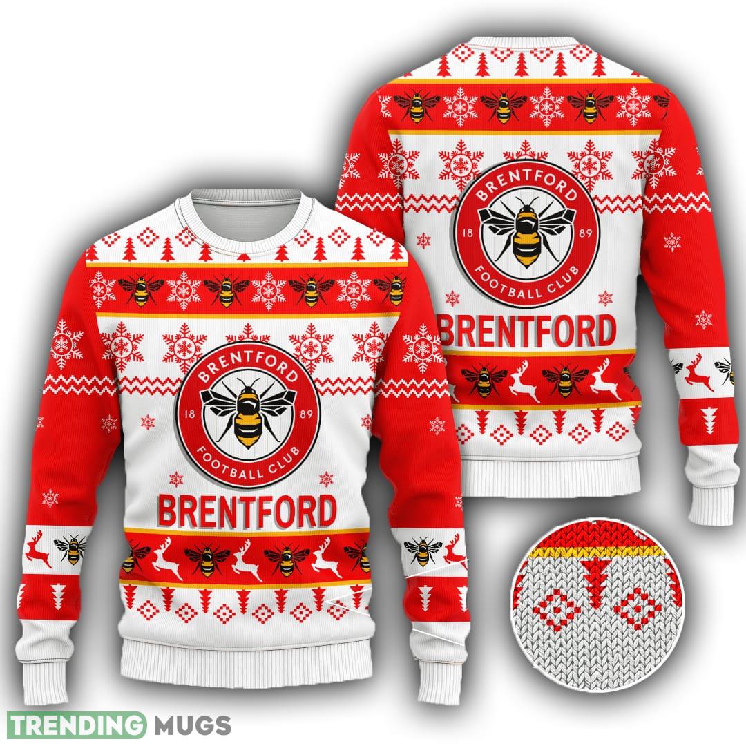 Designed for versatility, this Brentford FC Pullover All Over Print Ugly Christmas Sweater is suitable for any occasion. Wear it to your next holiday party, office gathering, or even as a statement piece during casual outings. Its eye-catching design is sure to spark conversations and admiration from fellow fans and festive enthusiasts alike.
