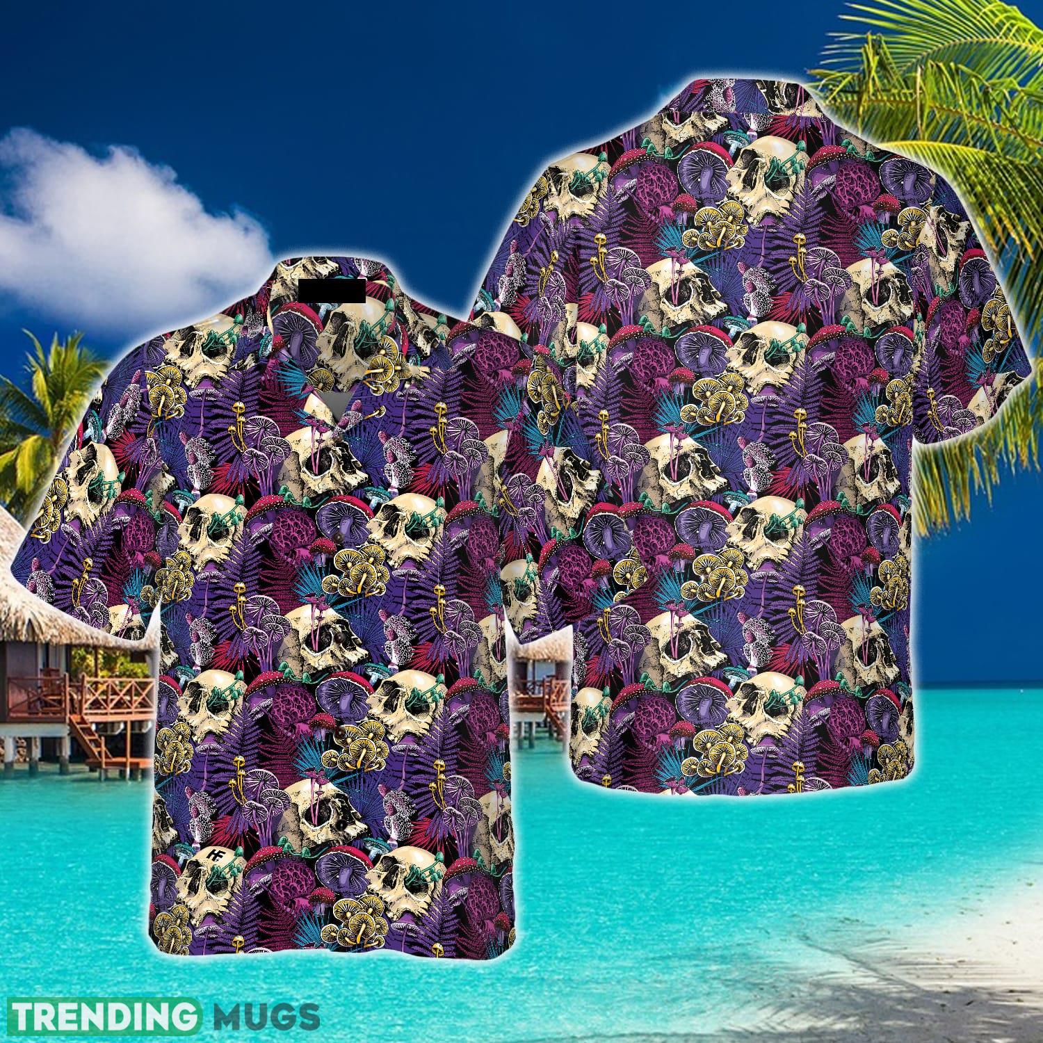 Bright Magic Psychedelic Mushrooms And Skulls Hawaiian Shirt Summer Beach Gift For Men And Women Details: