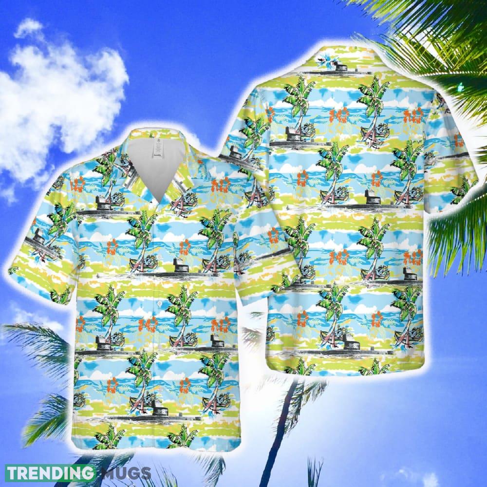 Made with high-quality materials, this Hawaiian shirt guarantees ultimate comfort and durability. The vibrant print features the iconic British E-class submarine, adding a touch of nautical charm to your beachwear. Whether you’re strolling along the shore or enjoying a tropical cocktail, this shirt will make you stand out in the crowd.