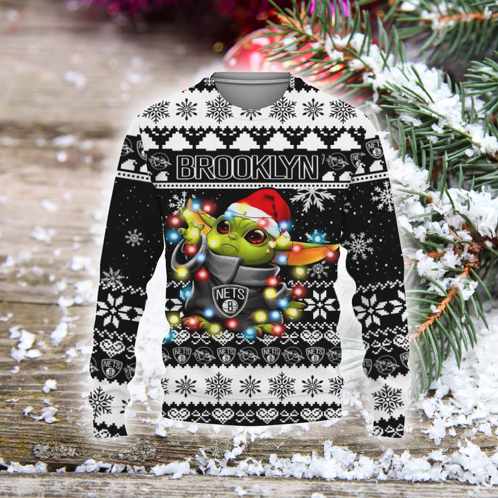 Brooklyn Nets Baby Yoda Star Wars Sports Football American Ugly Christmas Sweater Christmas Gift Holiday Unisex Sweatshirt For Fans – 011023-092522