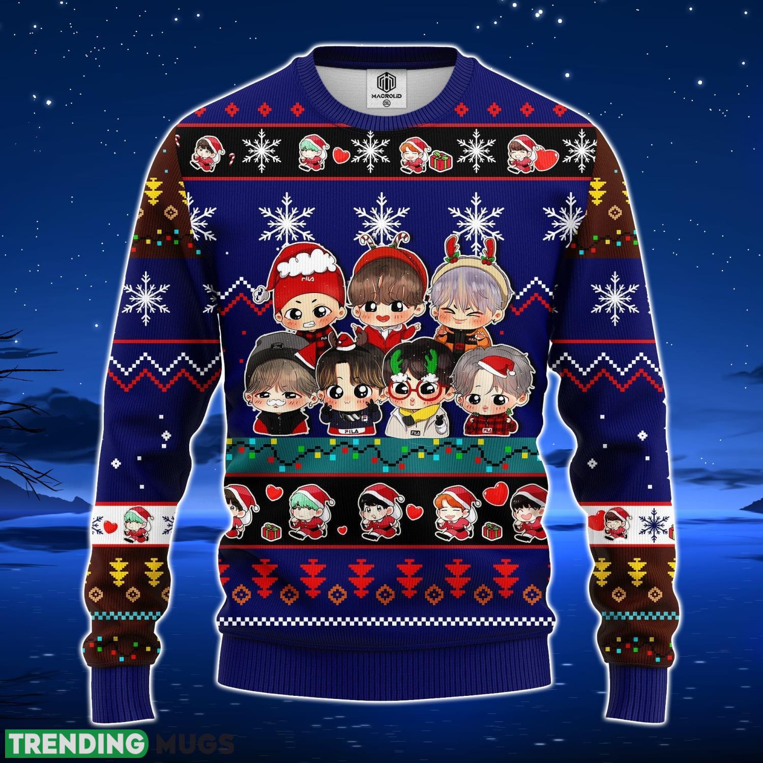 Bts Army Chibi Cute Ugly Christmas Sweater Blue 1 Amazing Gift Men And Women Christmas Gift