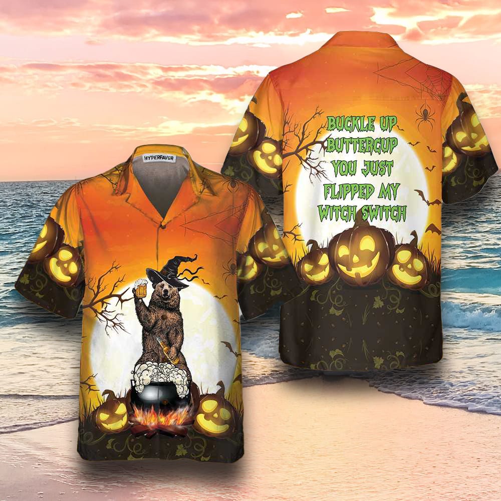 Buckle Up Buttercup You Just Flipped My Witch Switch Camping Bear Hawaiian Shirt Unique Halloween Camping Shirt Best Details: