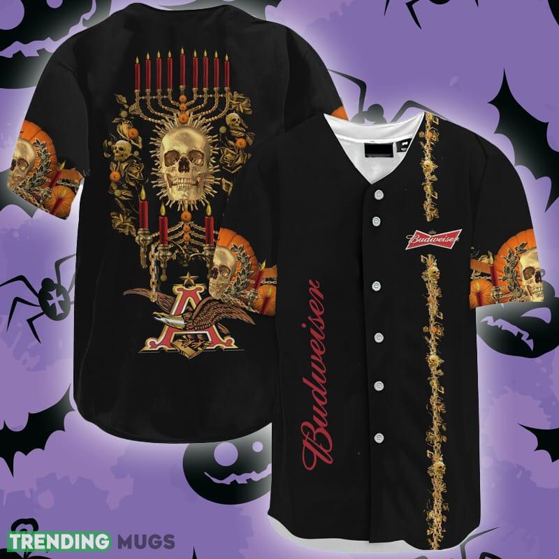 Budweiser Golden Skull And Pumpkin Baseball Jersey Shirt Information: