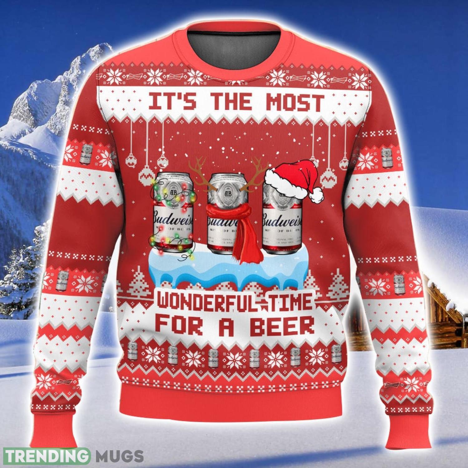 Budweiser It’s The Most Wonderful Time For A Beer All Over Printed Ugly Christmas Sweater 2023 Christmas Gift Ideas Holiday Gift Informations: