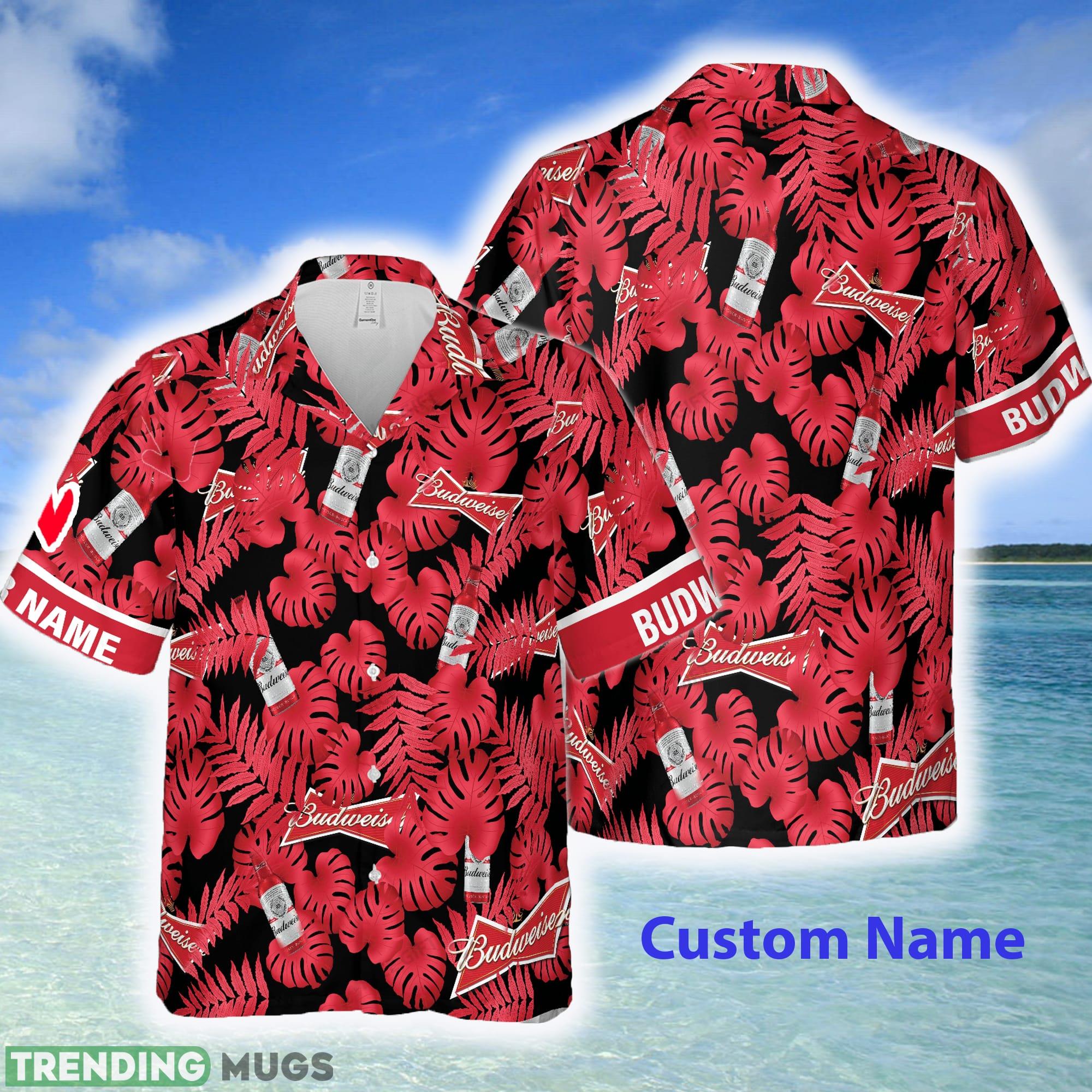 Featuring a classic Hawaiian design, this shirt showcases a tropical paradise with palm trees, waves, and the iconic Budweiser logo. But what sets it apart is the option to customize it with your own name, making it a truly unique and personalized gift. Whether you’re treating yourself or surprising a loved one, this shirt is sure to make a statement.