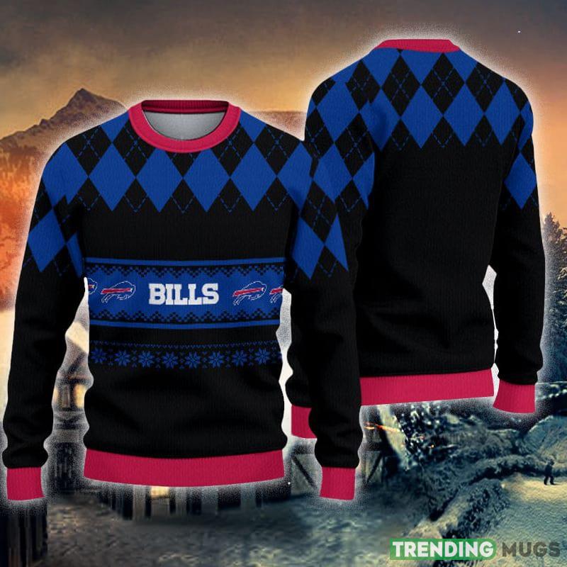 Buffalo Bills Christmas Caro Pattern Knitted Ugly Christmas Sweater AOP Gift For Men And Women 3D Sweater