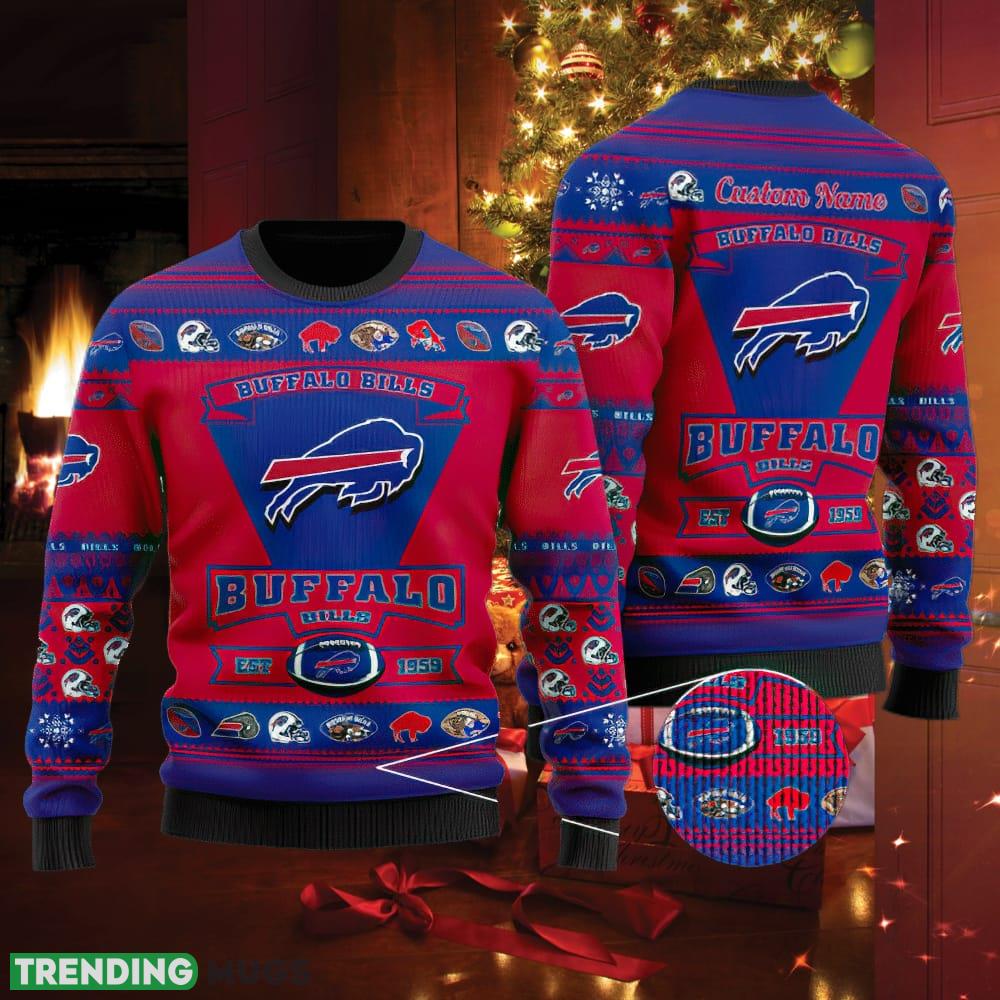Buffalo Bills Football Team Logo Ugly Christmas 3D Sweater Trend Custom Name - Buffalo Bills Football Team Logo Ugly Christmas 3D Sweater Trend Custom Name