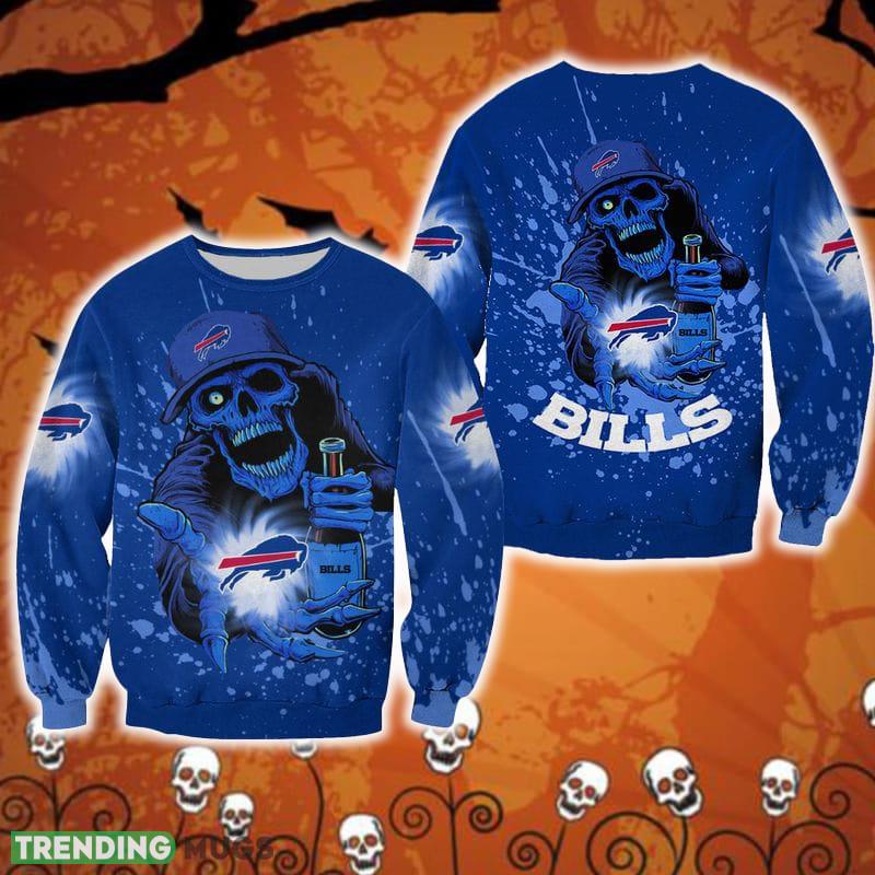 Buffalo Bills Halloween Skull Edition Unisex Red Halloween Ugly Sweater For Men And Women Gift Christmas 3D Sweater