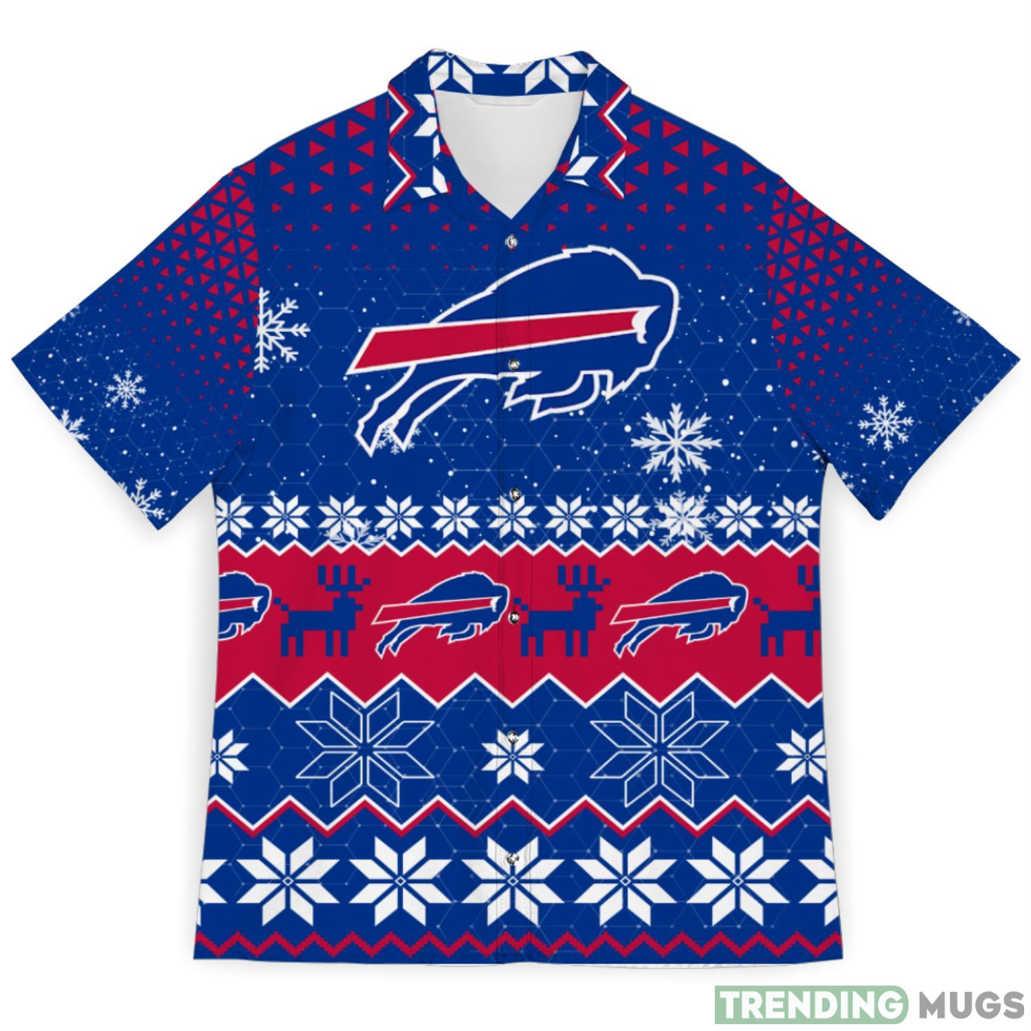 Buffalo Bills Snowflake Pattern 3D Hawaiian Shirt Christmas Gift Details: