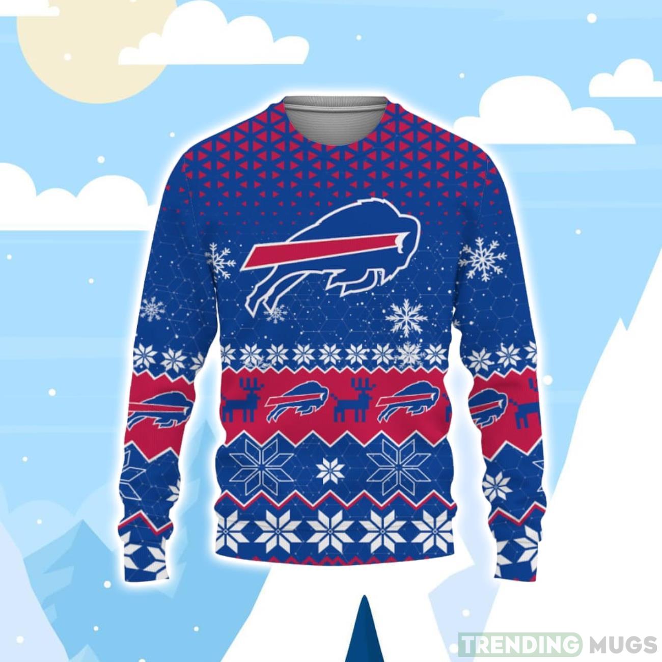 Crafted with high-quality materials, this sweater features the iconic Buffalo Bills logo, beautifully incorporated into a fun and festive Christmas design. The vibrant colors and intricate detailing truly bring this sweater to life, making it a standout piece at any holiday gathering or game day party.