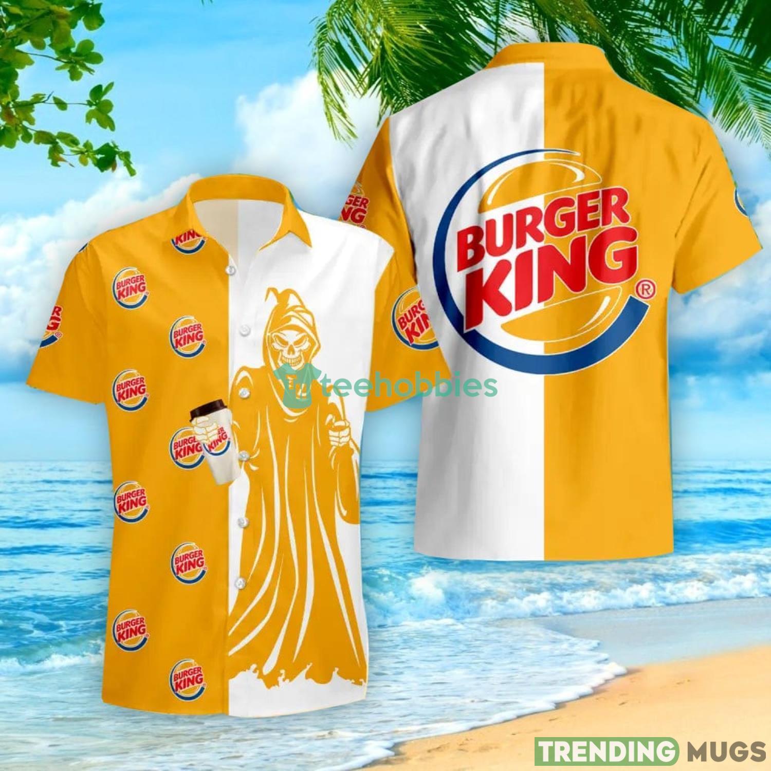 Not only is this set a must-have for Halloween enthusiasts, but it also makes for a fantastic gift option. Surprise a loved one with this unique summer gift, and watch their face light up with delight. Perfect for birthdays, anniversaries, or any occasion that calls for a little bit of spooky charm, the Burger King Death Halloween Hawaiian Shirt and Shorts will surely be a hit.