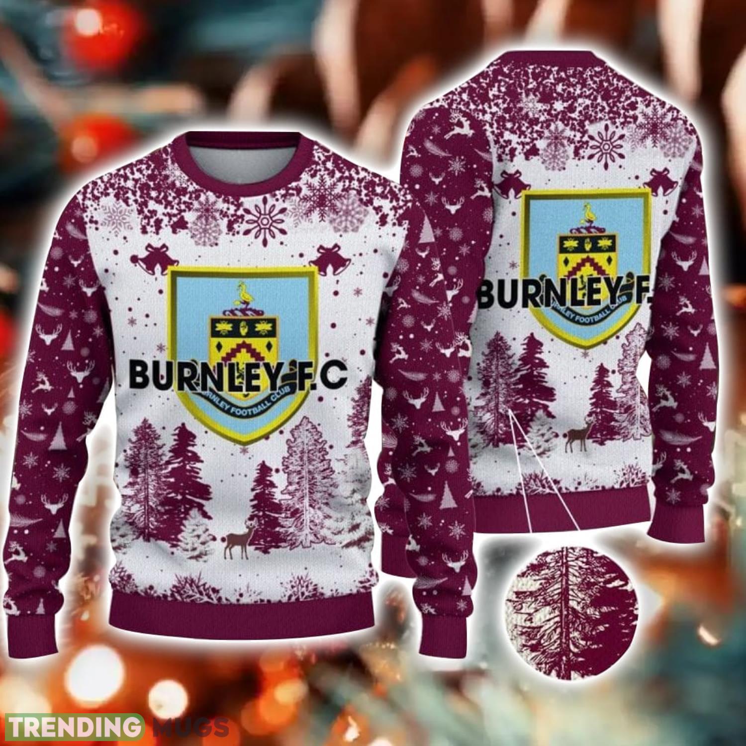 So why wait? Show off your team spirit and spread some holiday cheer with our Burnley FC Big Logo Pine Trees Big Fans Gift Christmas Sweater. Order yours today and make this festive season truly special.