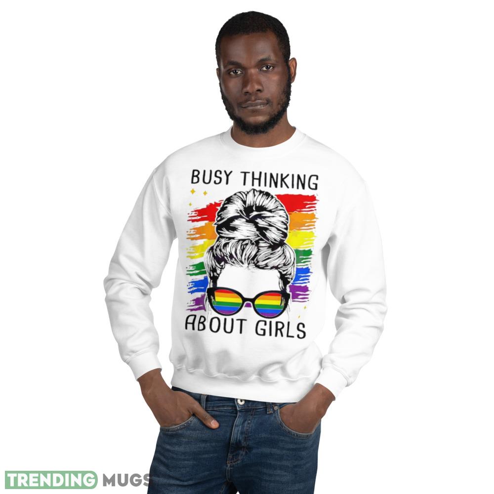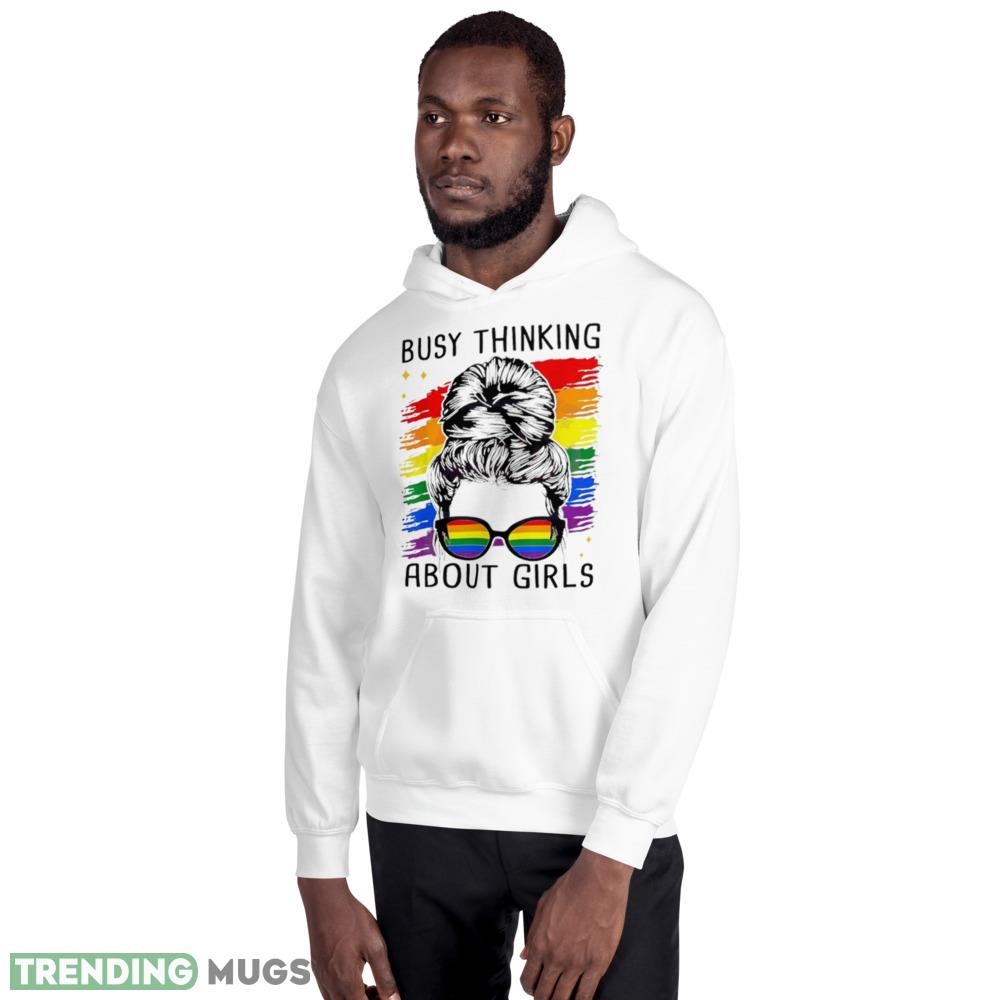 The Busy Thinking About Girls Pride Month Shirt is an excellent addition to your wardrobe, suitable for any occasion. Whether you’re attending a Pride parade, hanging out with friends, or going to work, this shirt will make a statement and show your support.