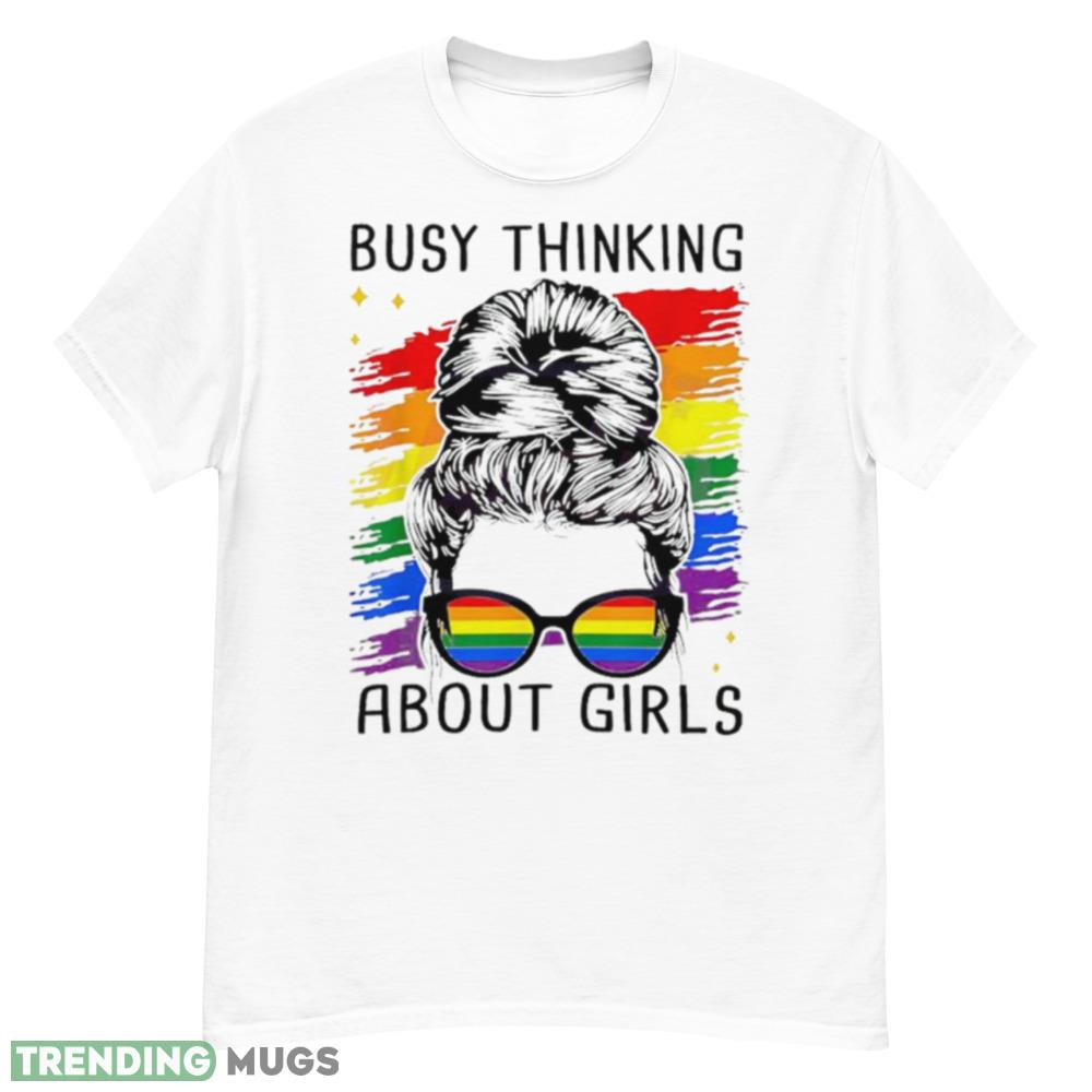 Get your Busy Thinking About Girls Pride Month Shirt today and join the fight for equality. Wear it with pride and show your support for the LGBTQ+ community. Let’s celebrate love in all its forms and make the world a better place!