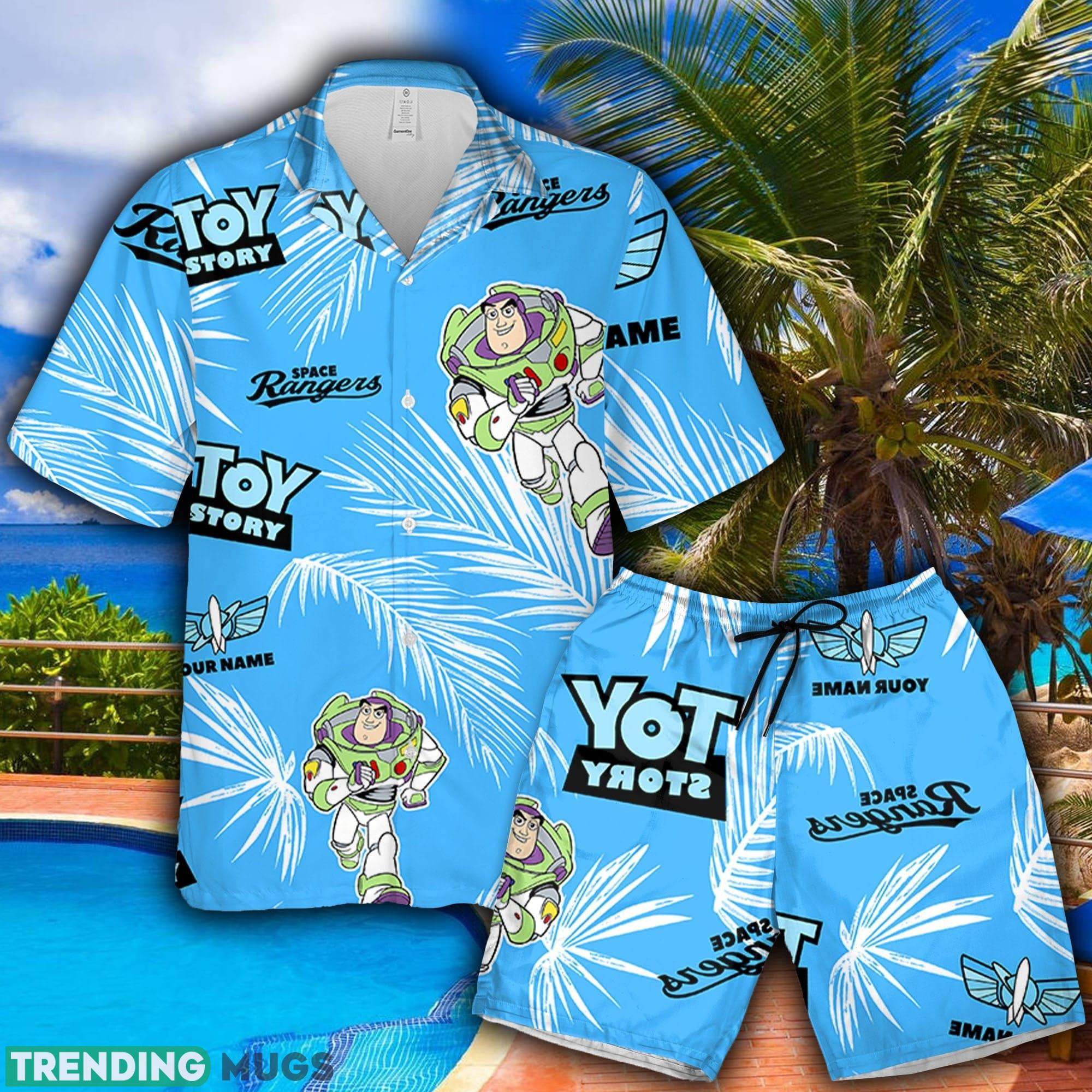 Some of the Buzz Lightyear Space Buzz blue yellow white Hawaiian Shirt And Short Palm Leaves Custom Name Summer Gift For Men And Women photos