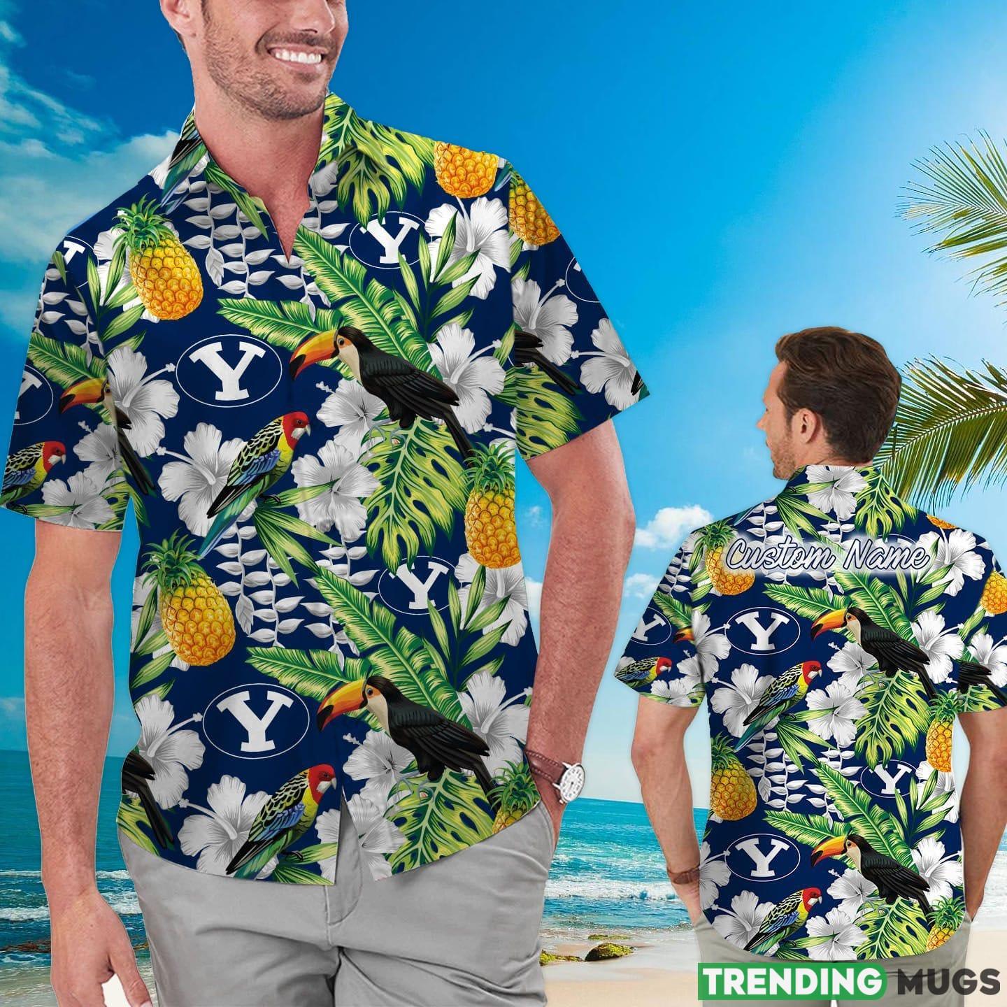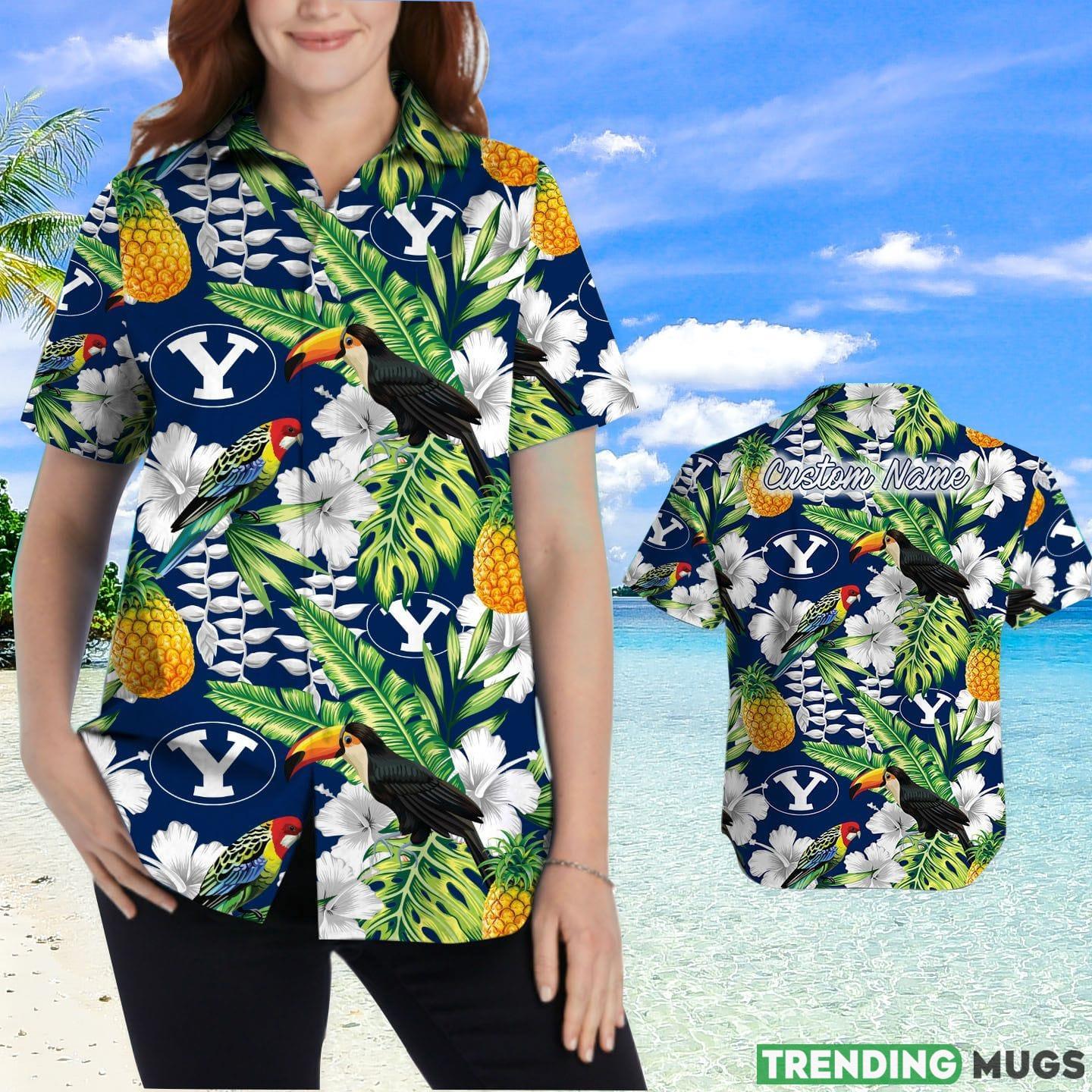 BYU Cougars Custom Name Parrot Floral Tropical Hawaiian Shirt Details: