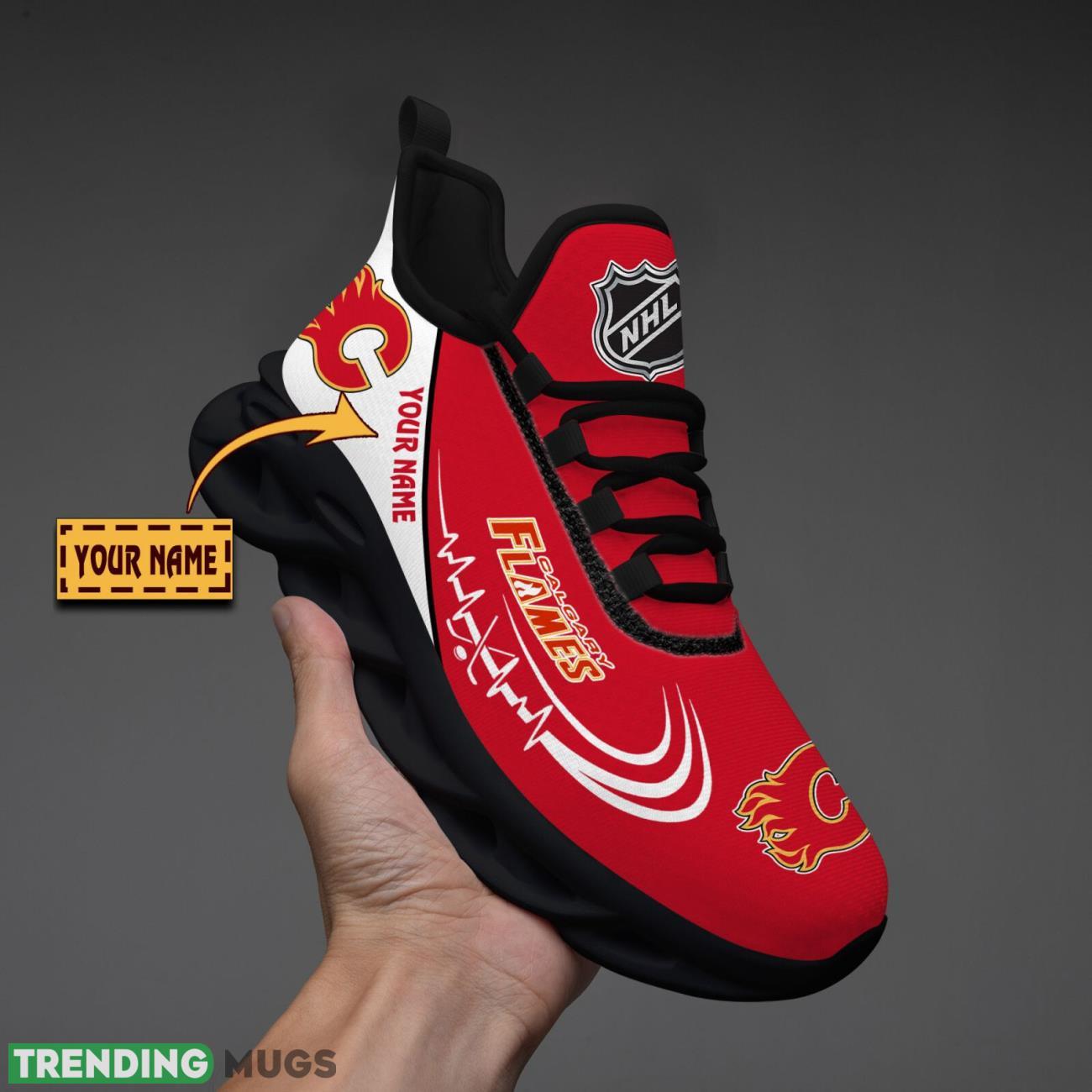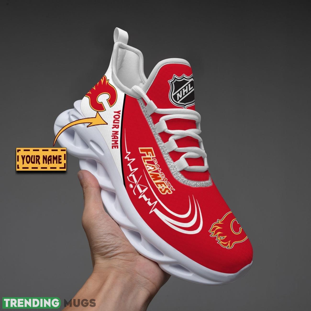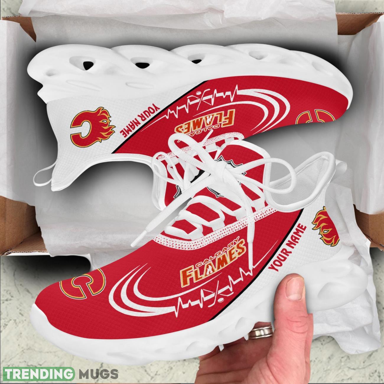 Show your love for the Calgary Flames with these custom name running sneakers! Perfect for men and women who are die-hard fans of the team, these sporty Max Soul shoes will have you looking stylish both on and off the track. The sleek design and comfortable fit make them ideal for workouts or everyday wear. Get ready to show off your team spirit in these Calgary Flames lover running sneakers!