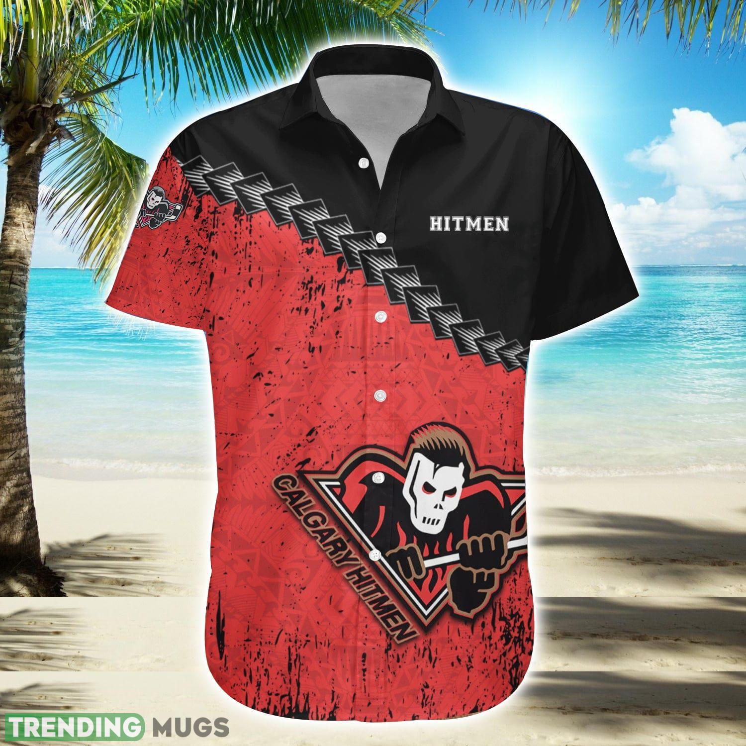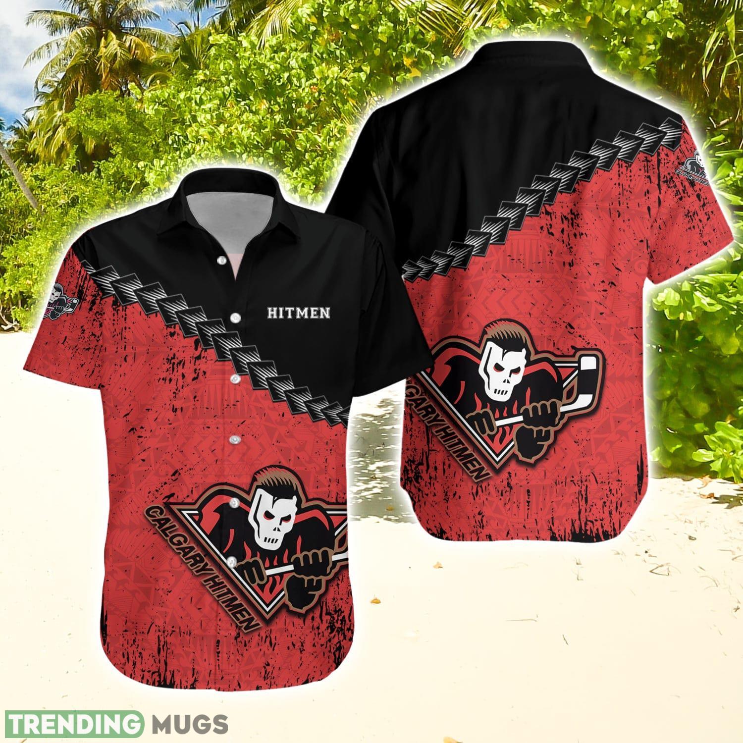 Calgary Hitmen Ca Hockey Grunge Polynesian Tattoo Pattern Hawaiian Shirt For Fans Details: