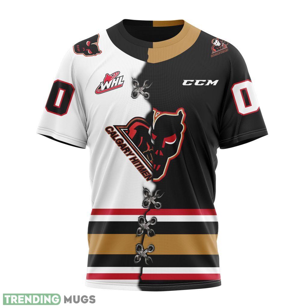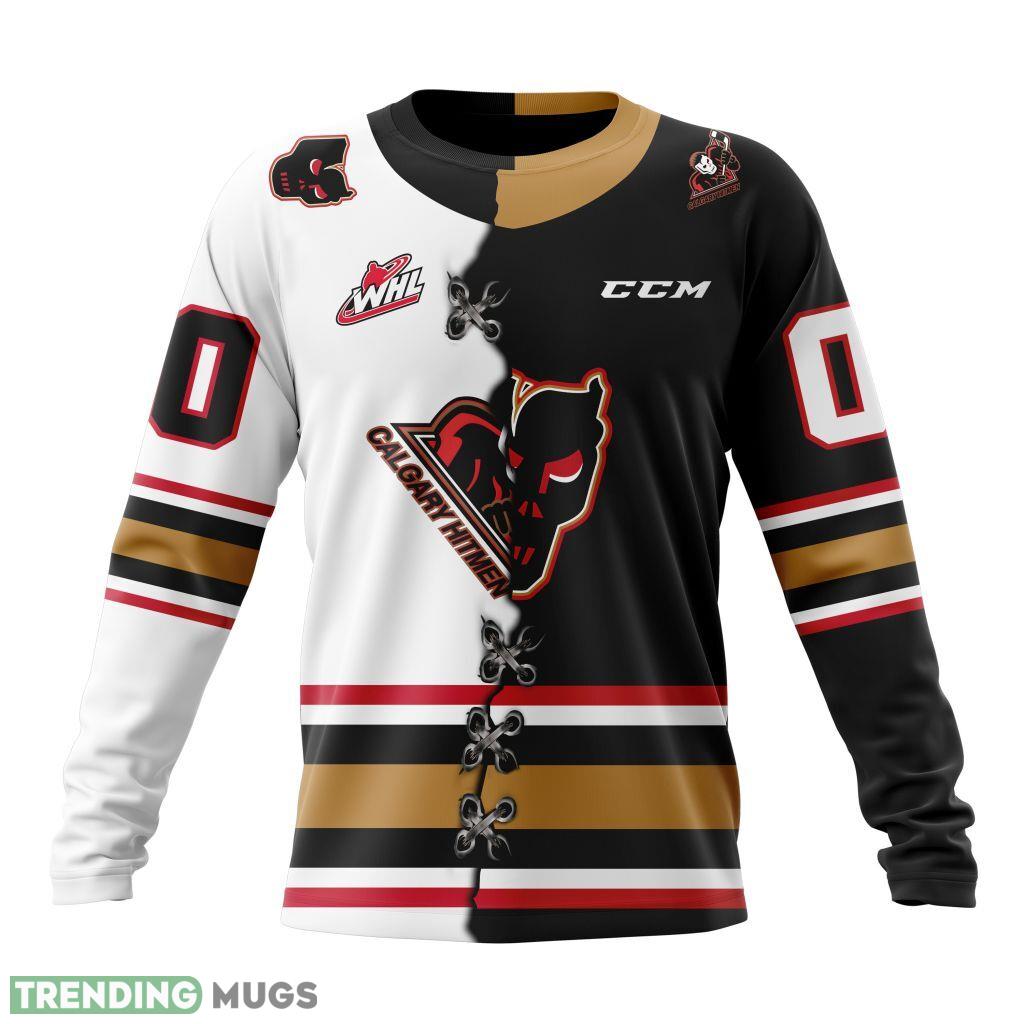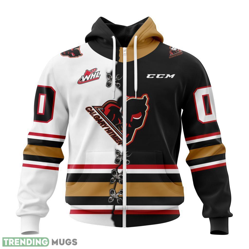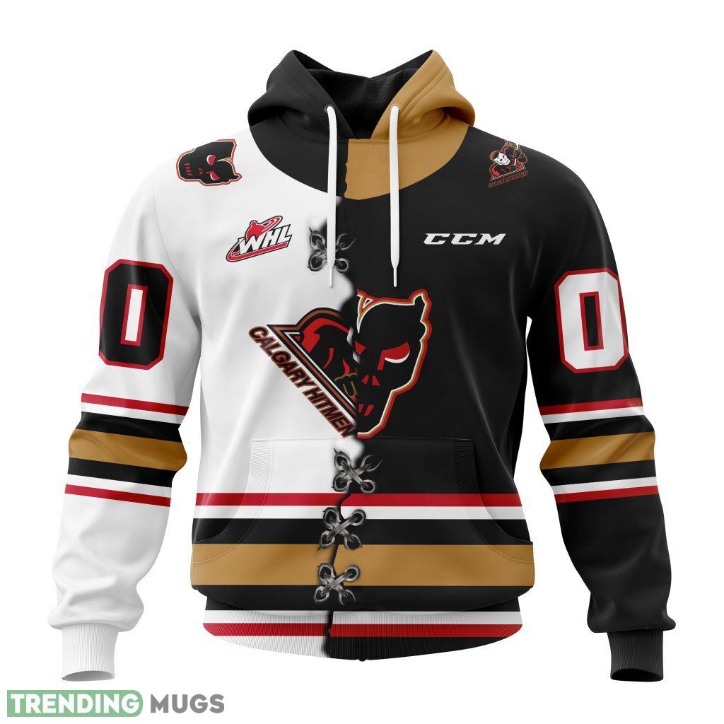 Some of the Calgary Hitmen Western Hockey League WHL Mix Home And Away Jersey 3D Hoodie, AOP Custom Number And Name photos
