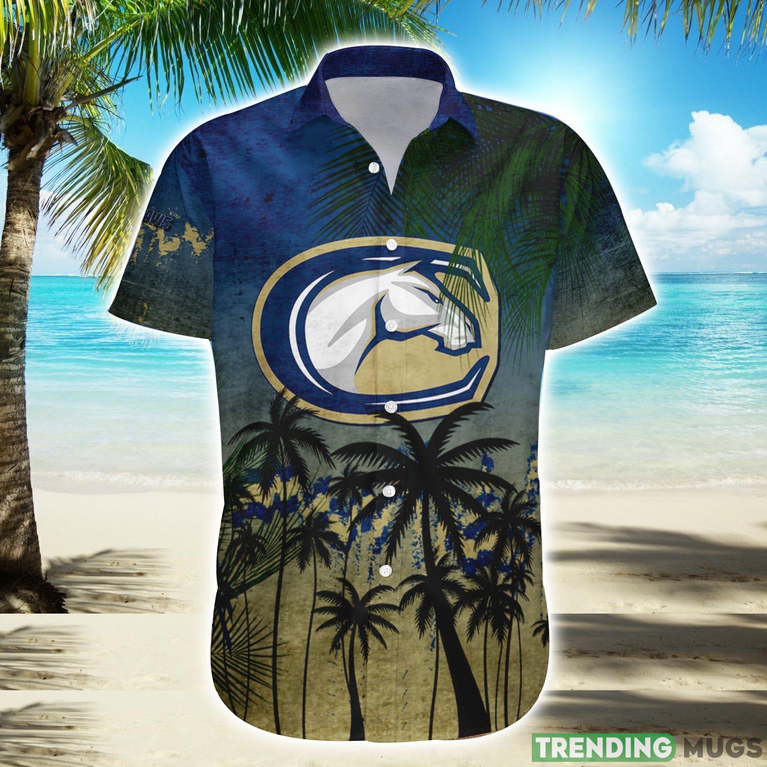 California Davis Aggies Hawaiian Shirt Summer Gift Coconut Tree Tropical Grunge Pattern For NCAA Fans Details: