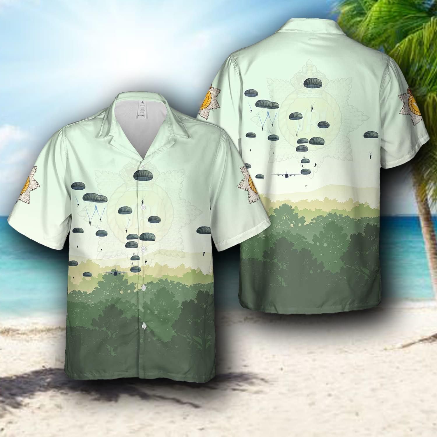 Be the first to review “Canadian Army Soldiers from 3rd Battalion, The Royal Canadian Regiment, jump training exercise at Drop Zone Lamure Bay Hawaiian Shirt”