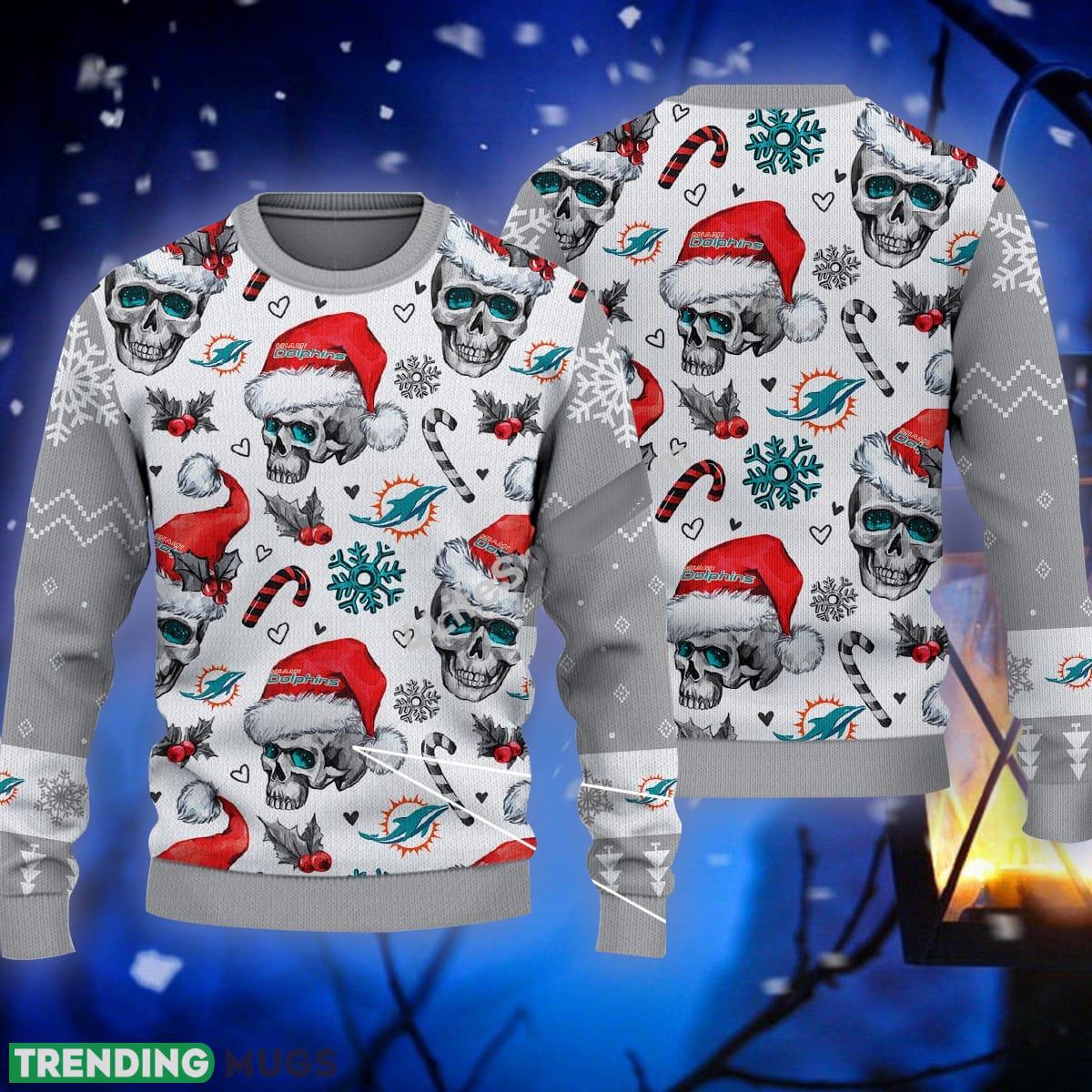 Candy Miami Dolphins NFL Skull Grey Sweater Ugly Christmas For Men And Women – Candy Miami Dolphins NFL Skull Grey Sweater Ugly Christmas For Men And Women