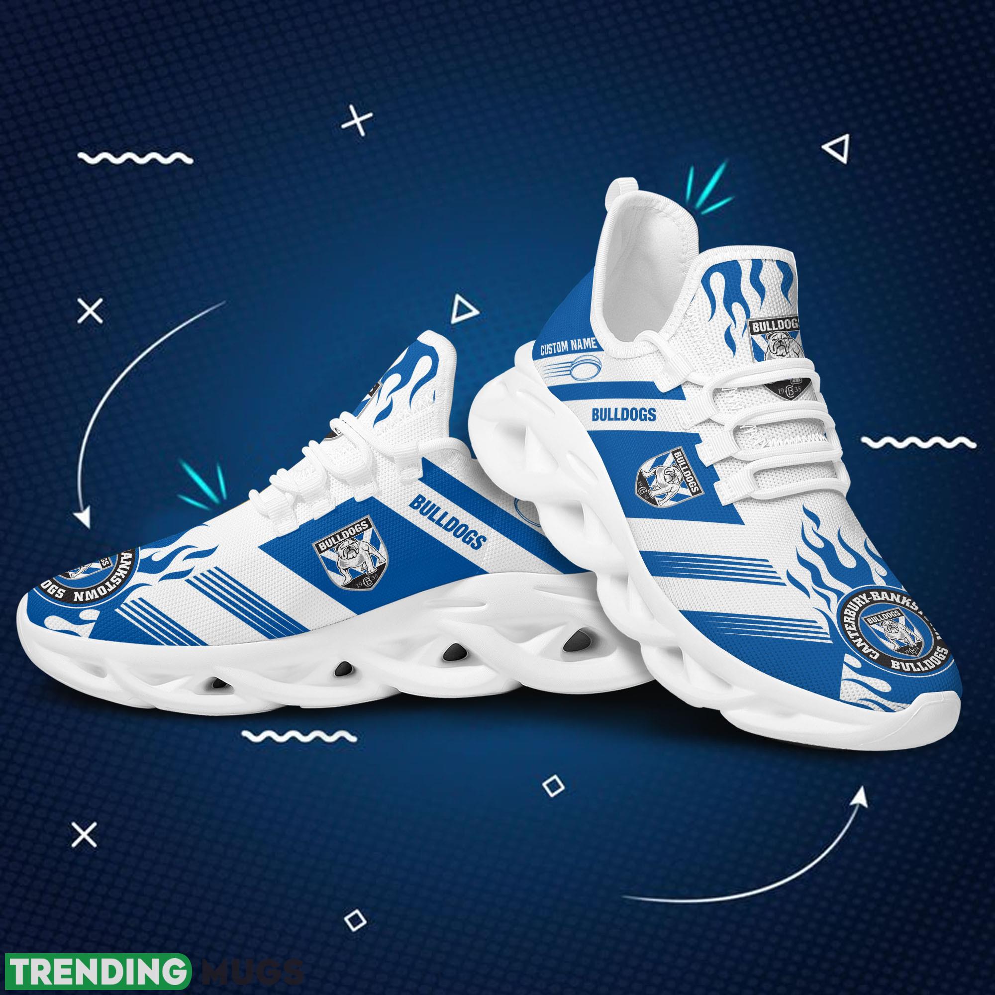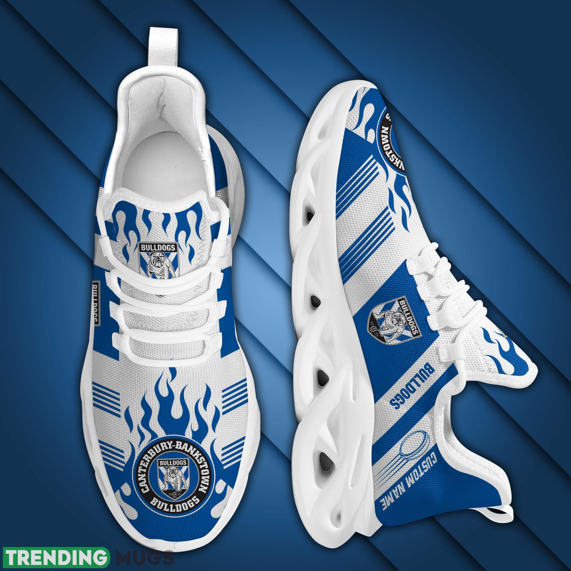 Canterbury-Bankstown Bulldogs Logo Custom Name Running Sneaker Max Soul Shoes In Blue And White information: