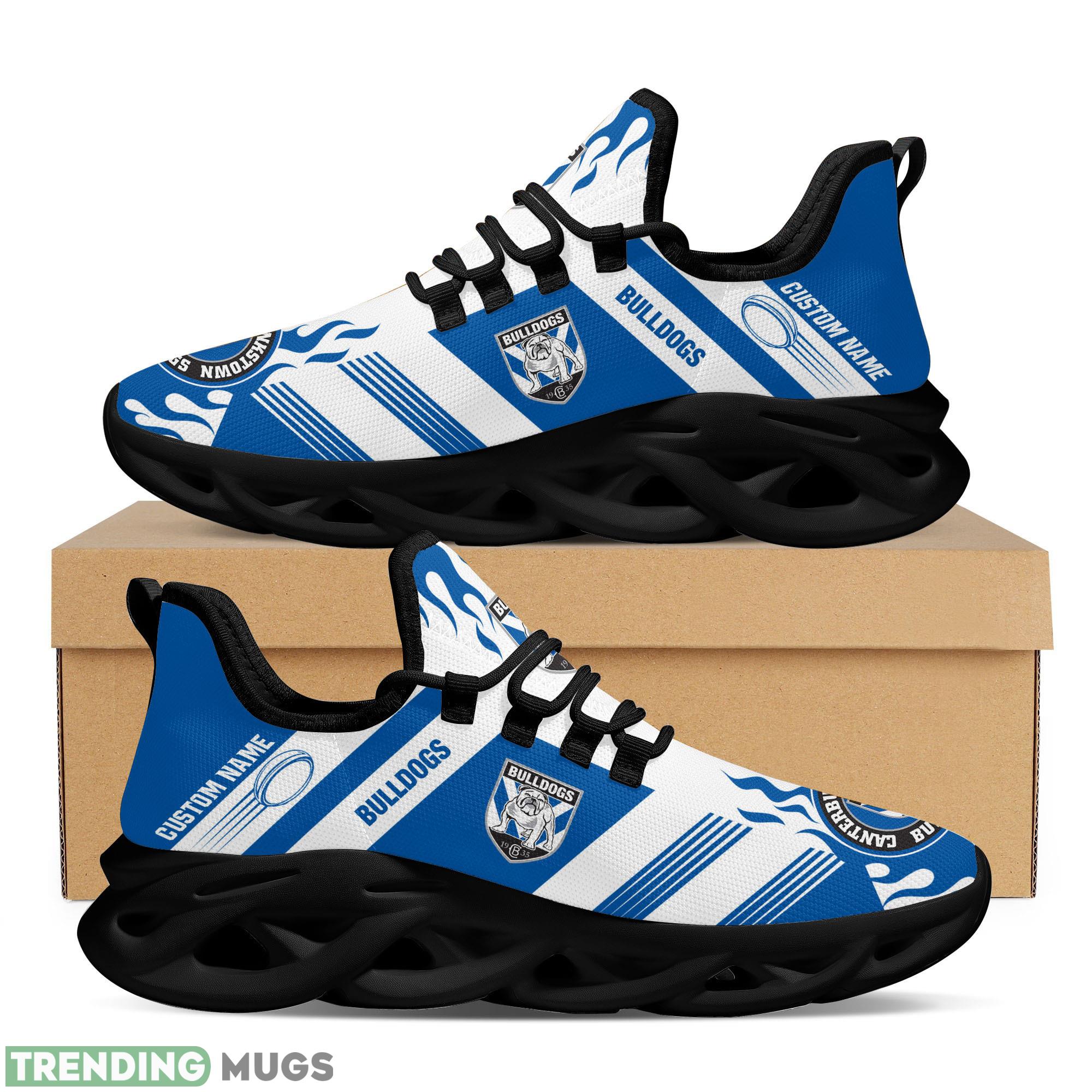 Don’t miss out on the opportunity to show off your Bulldogs pride in a unique and fashionable way. Order your Canterbury-Bankstown Bulldogs Logo Custom Name Running Sneaker Max Soul Shoes in Blue and White today and step up your shoe game like never before.